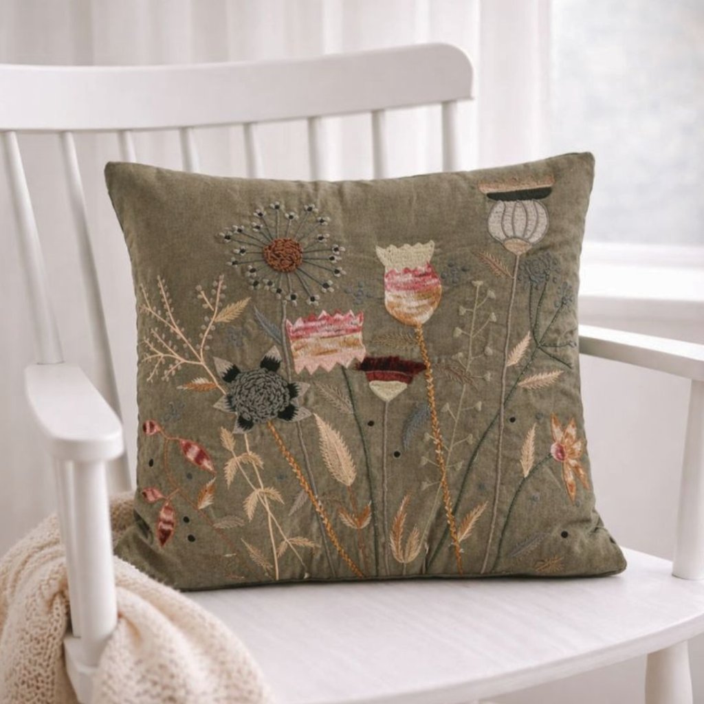 - Polštář vyšívaný Pink Flower je jako něžná jarní louka ukrytá v látce. Ručně tkané roztomilé květiny mu dodávají jedinečný kouzelný vzhled, jemné, hravé a zároveň elegantní.