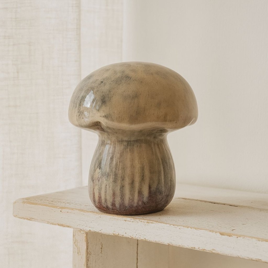 - Objevte kouzlo lesní říše u vás doma s touto nádhernou porcelánovou houbou v tmavě hnědém odstínu.