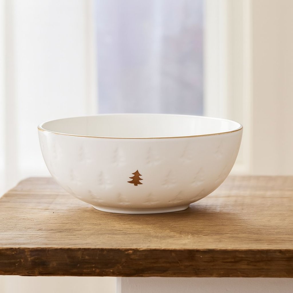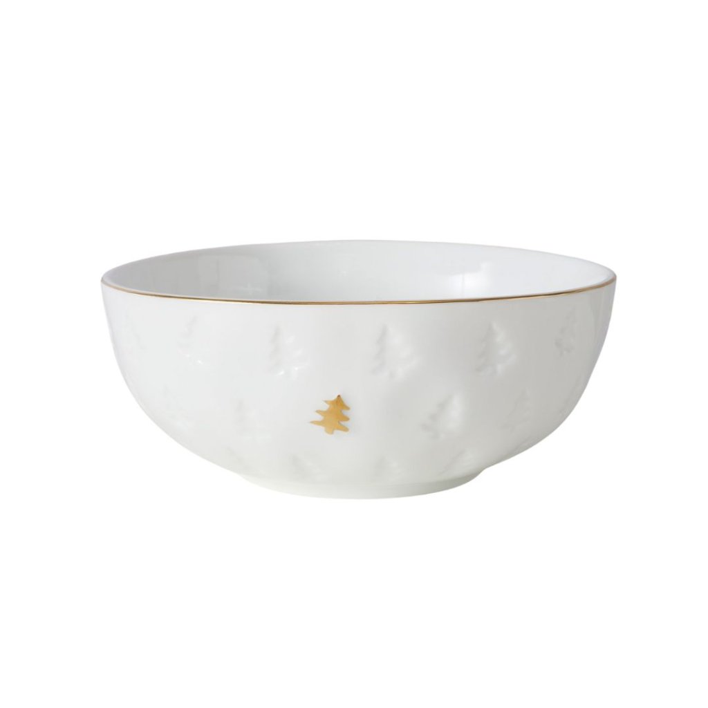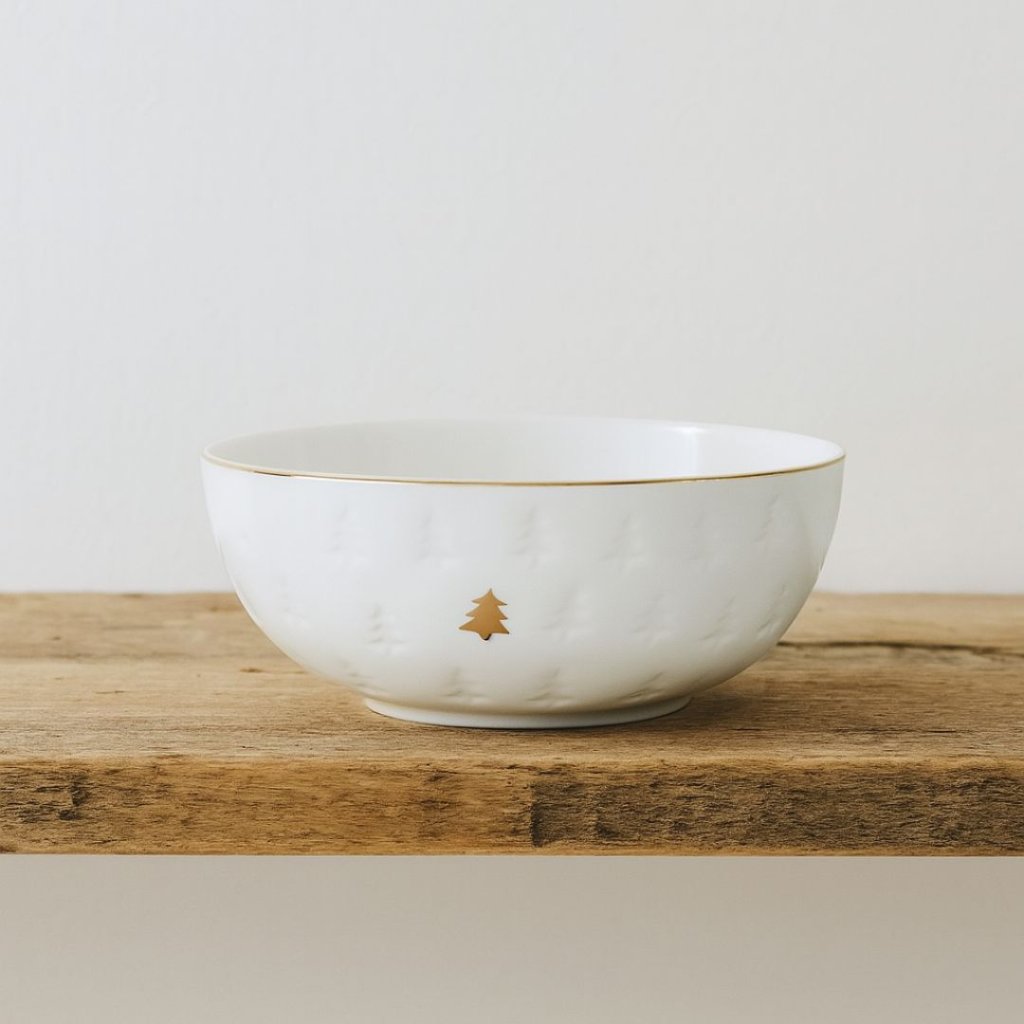 - Elegantní porcelánová miska s jemným reliéfem vánočních stromků a decentní zlatou ozdobou zaujme na první pohled.
