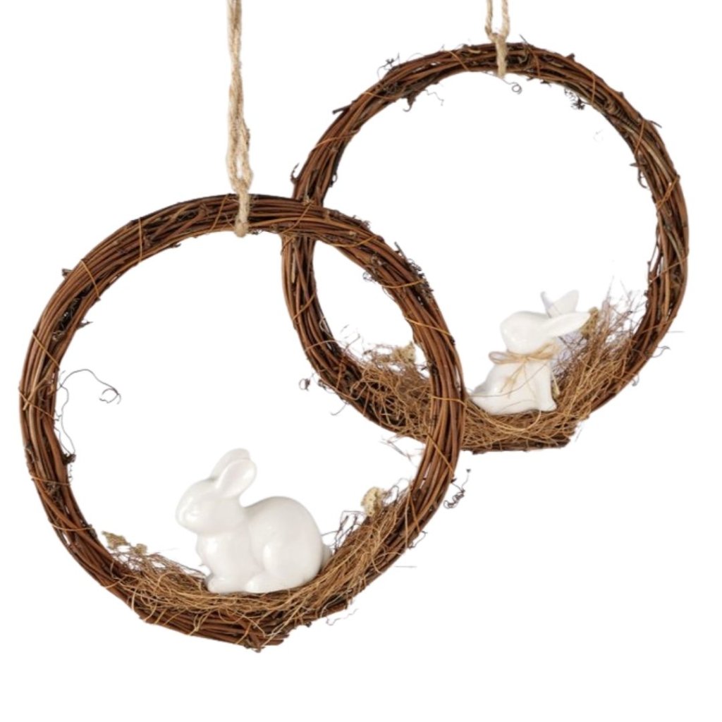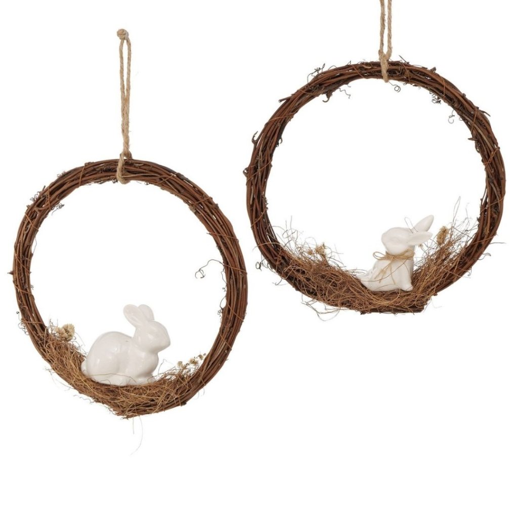 Porcelánový králík Frode v proutěném věnci 12 cm