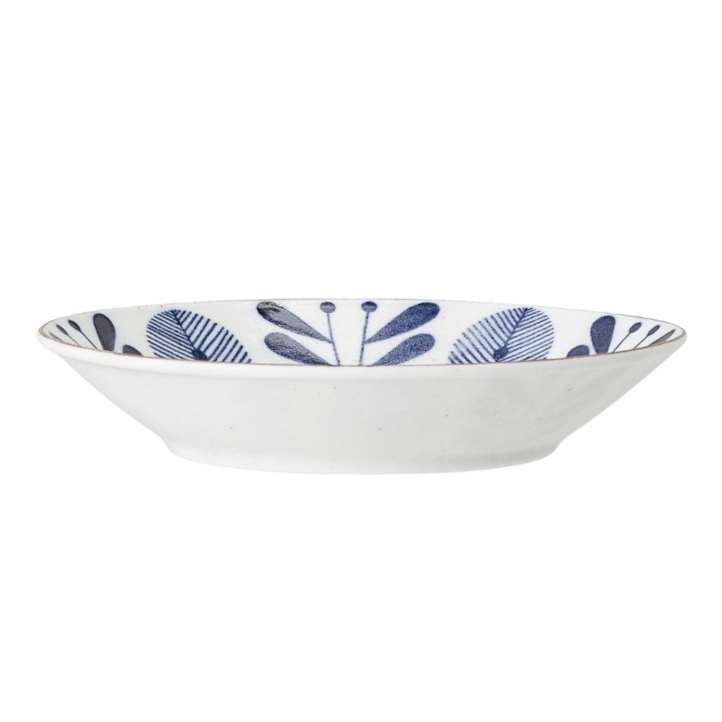 Krásný porcelánový talíř s modrým dekorem od značky Bloomingville dokonale vynikne ve Vaší kuchyni nebo při stolování na venkovní terase.Ať už budete servírovat jakékoliv chutné pokrmy a pochutiny, tak vždy bude krásným doplňkem na Vašem stole.Talíř použijte na drobné potraviny, polévka atd.Severský styl a přírodní materiál, který je jedinečný..