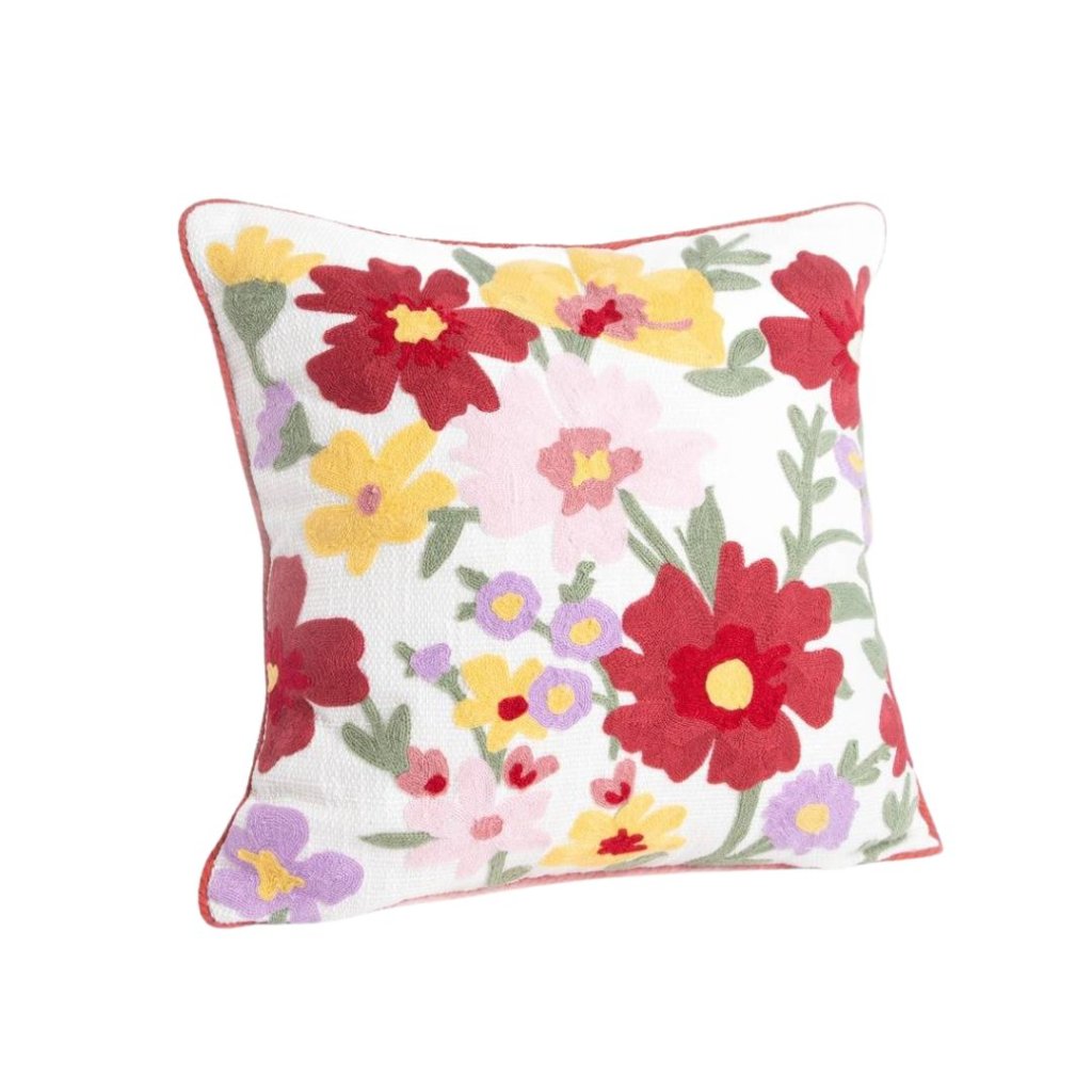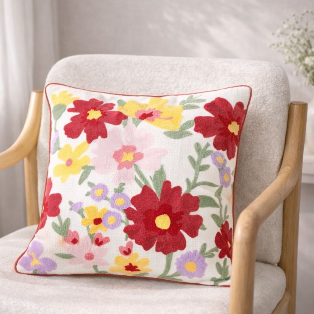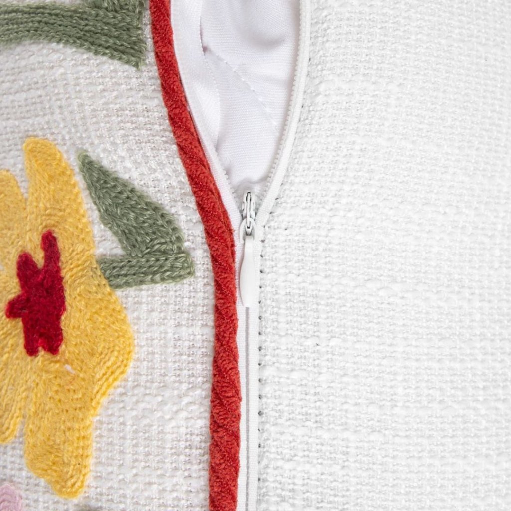 Vyšívaný povlak s jemným květinovým motivem a decentním lemováním vnese do interiéru klid, lehkost a radost z detailu. Krásně doladí křeslo u okna, pohovku i postel – přesně ten kousek, který udělá domov domovem -