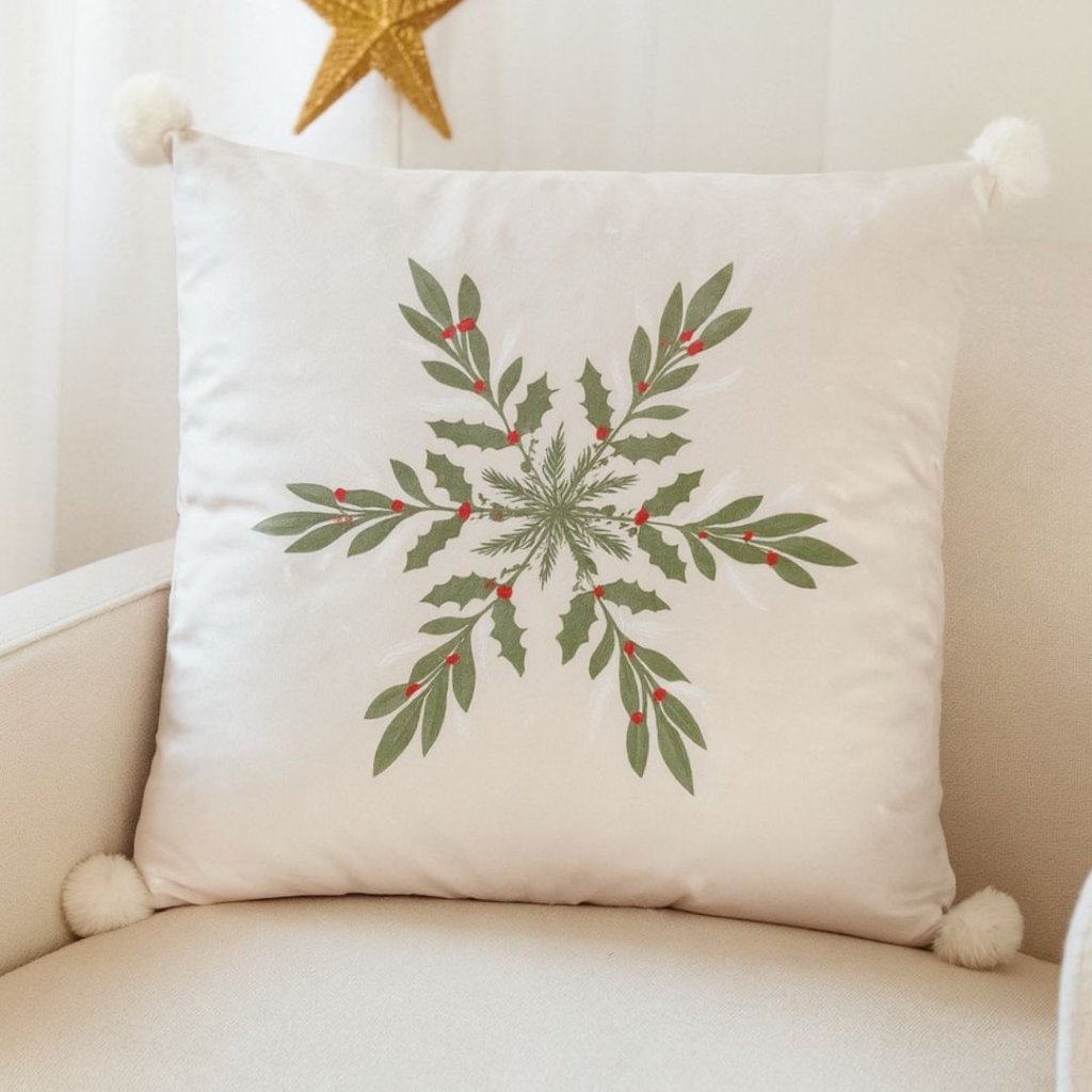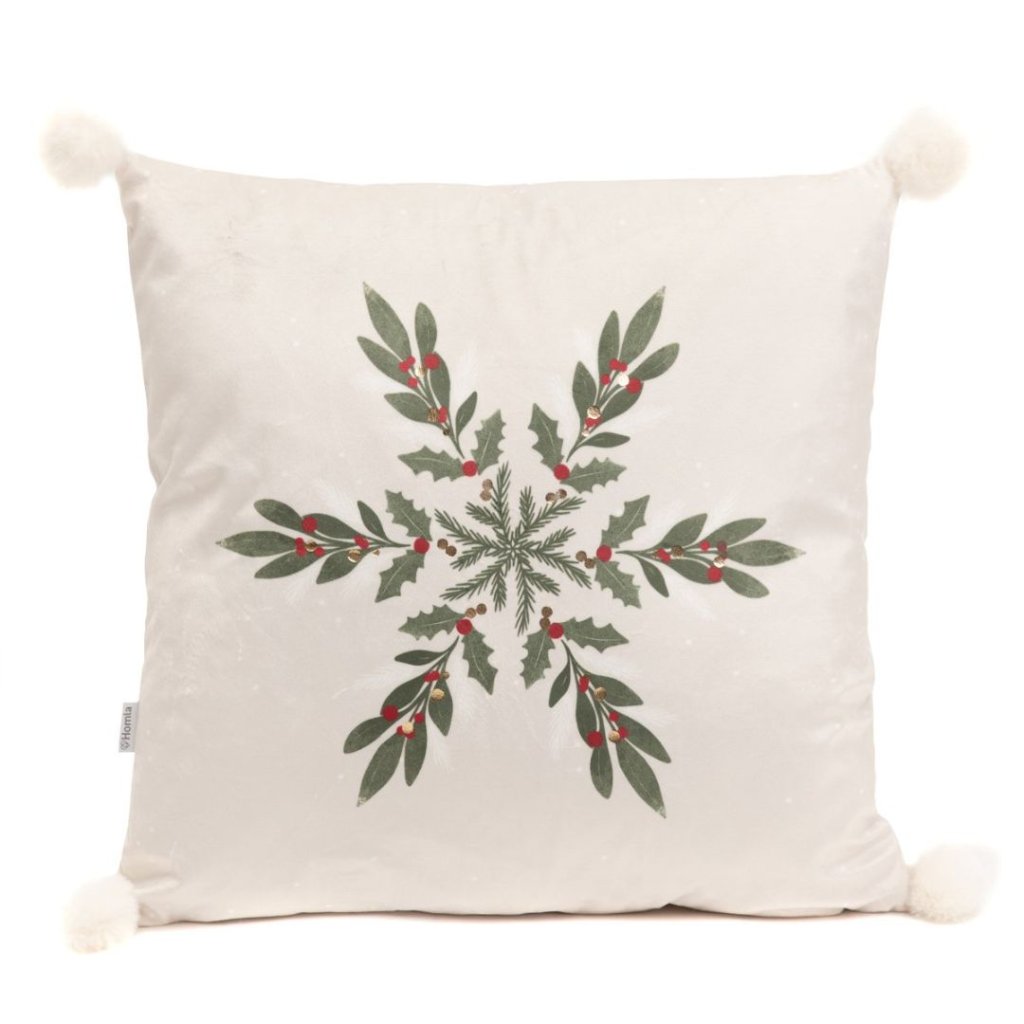 - Je dokonalou dekorací pro zimní období. Jeho jemný vzor lístků vnese do vašeho domova kouzelnou atmosféru, která navodí pocit útulna a sváteční nálady. 🎄❄️ Ústředním dekorem je snítka jmelí v tlumeném odstínu zelené s červenými bobulemi. Povlak je také zdoben bambulkami ve čtyřech rozích.