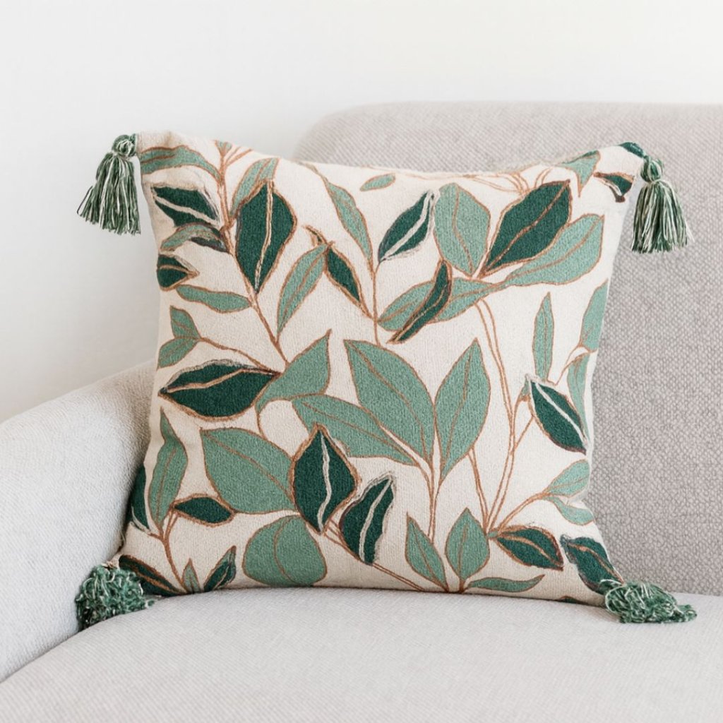 - Dodejte svému interiéru lehkost přírody a hřejivý šmrnc. Povlak na polštář se stylovým vyšívaným vzorem listů a hravými střapci je dokonalým doplňkem pro váš gauč, postel nebo křeslo. Díky příjemné látce na dotek si zamilujete každý odpočinek. Praktický zip s překrytím zajistí snadné převlékání i elegantní vzhled.