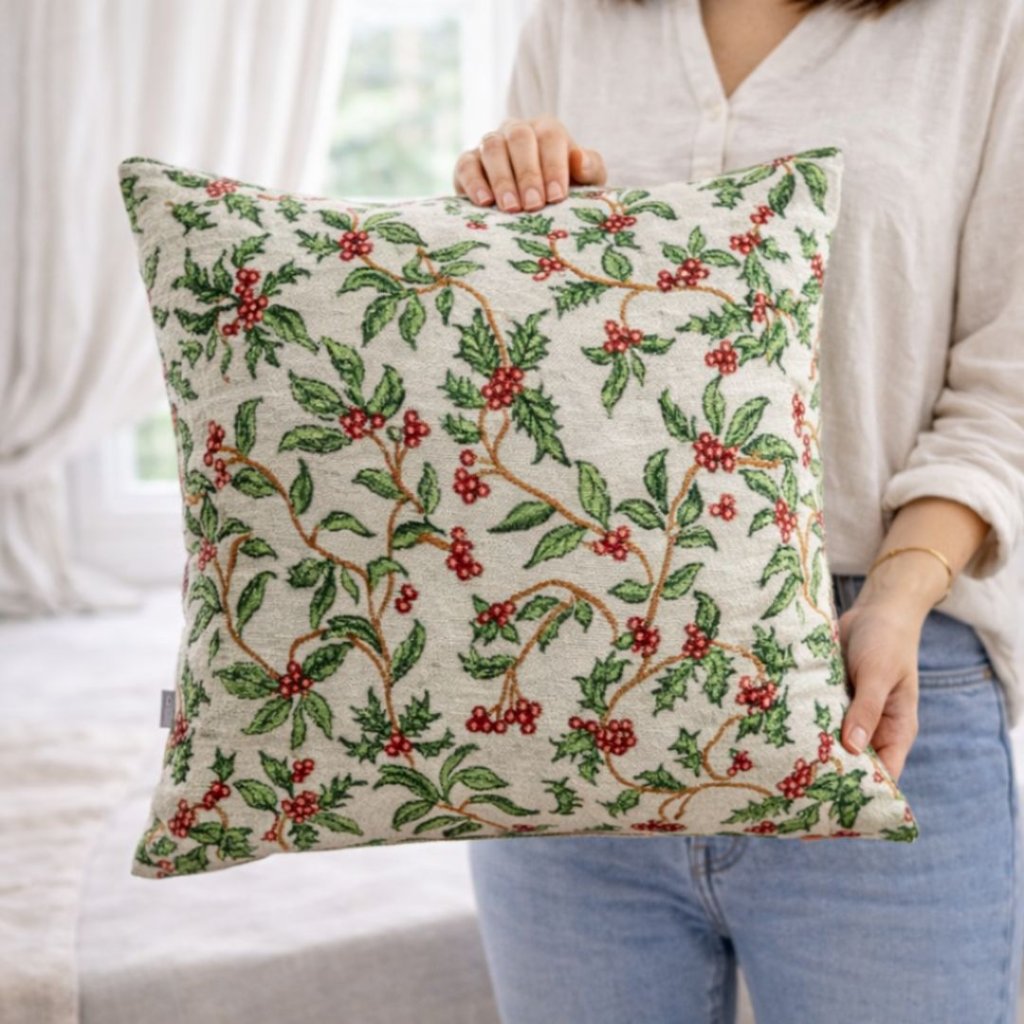 - Tento nádherný povlak na polštář s tradičním vánočním vzorem cesmíny vnese do vašeho domova hřejivou atmosféru svátků.
