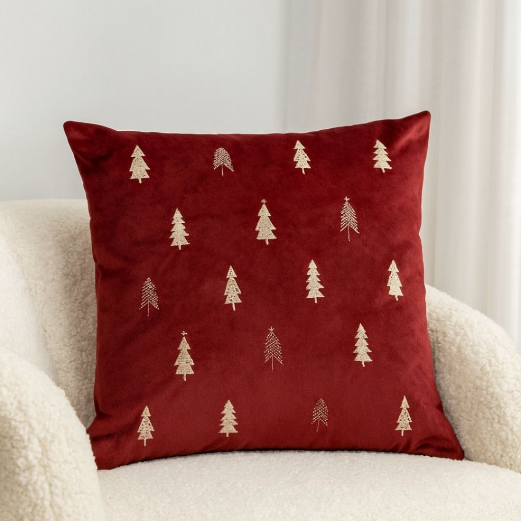 - Měkký jemný povlak na polštář – Vínový se stromečkovým zlatým vyšíváním vzor ✨