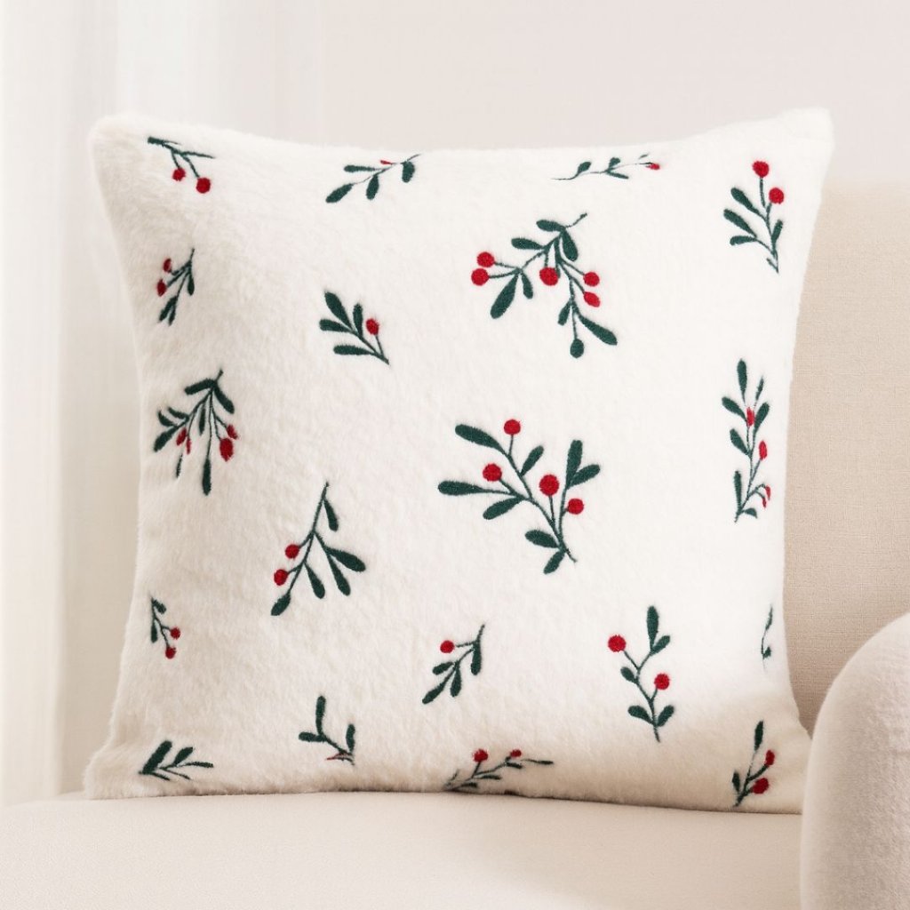 - ❄️ Zimní roztomilý povlak na polštář s vyšívaným jmelím – 45 cm ❄️