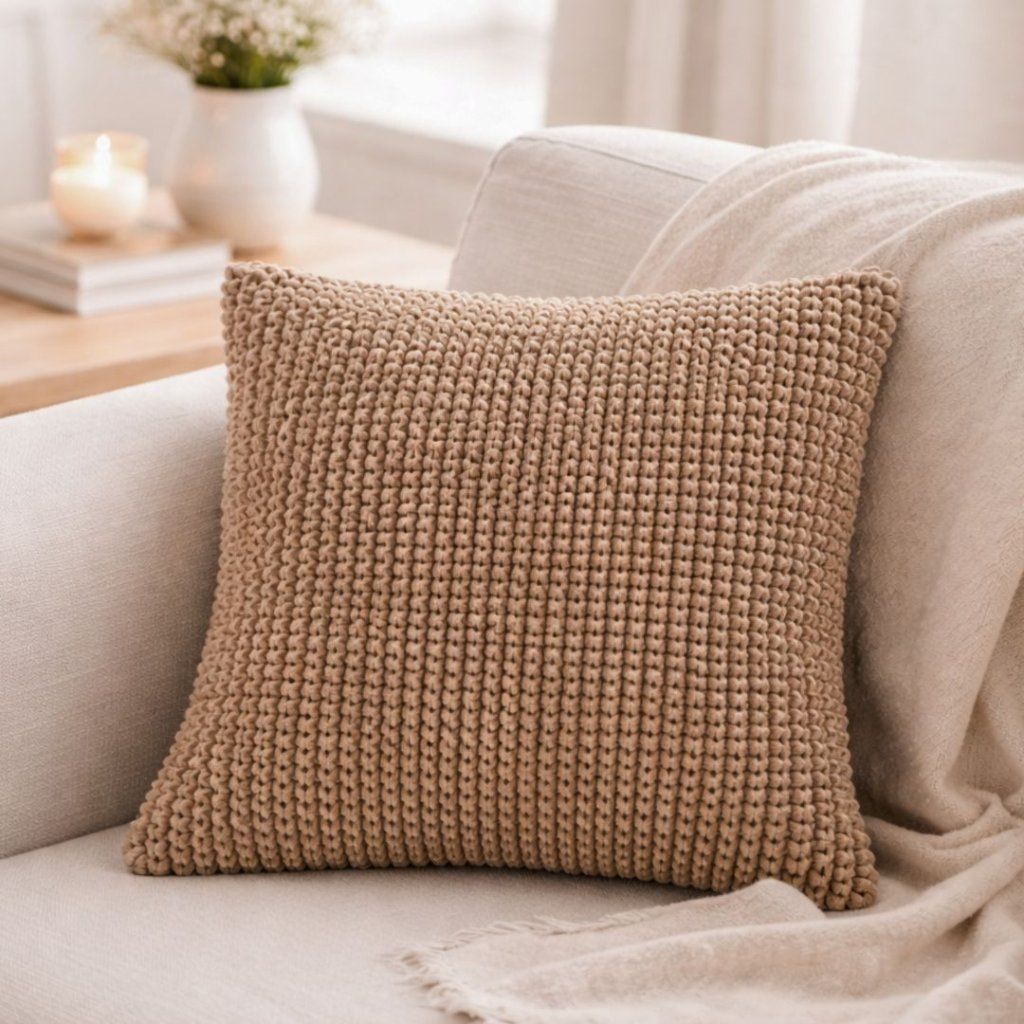 Povlak s ozdobnou smyčkovou výšivkou světle hnědý