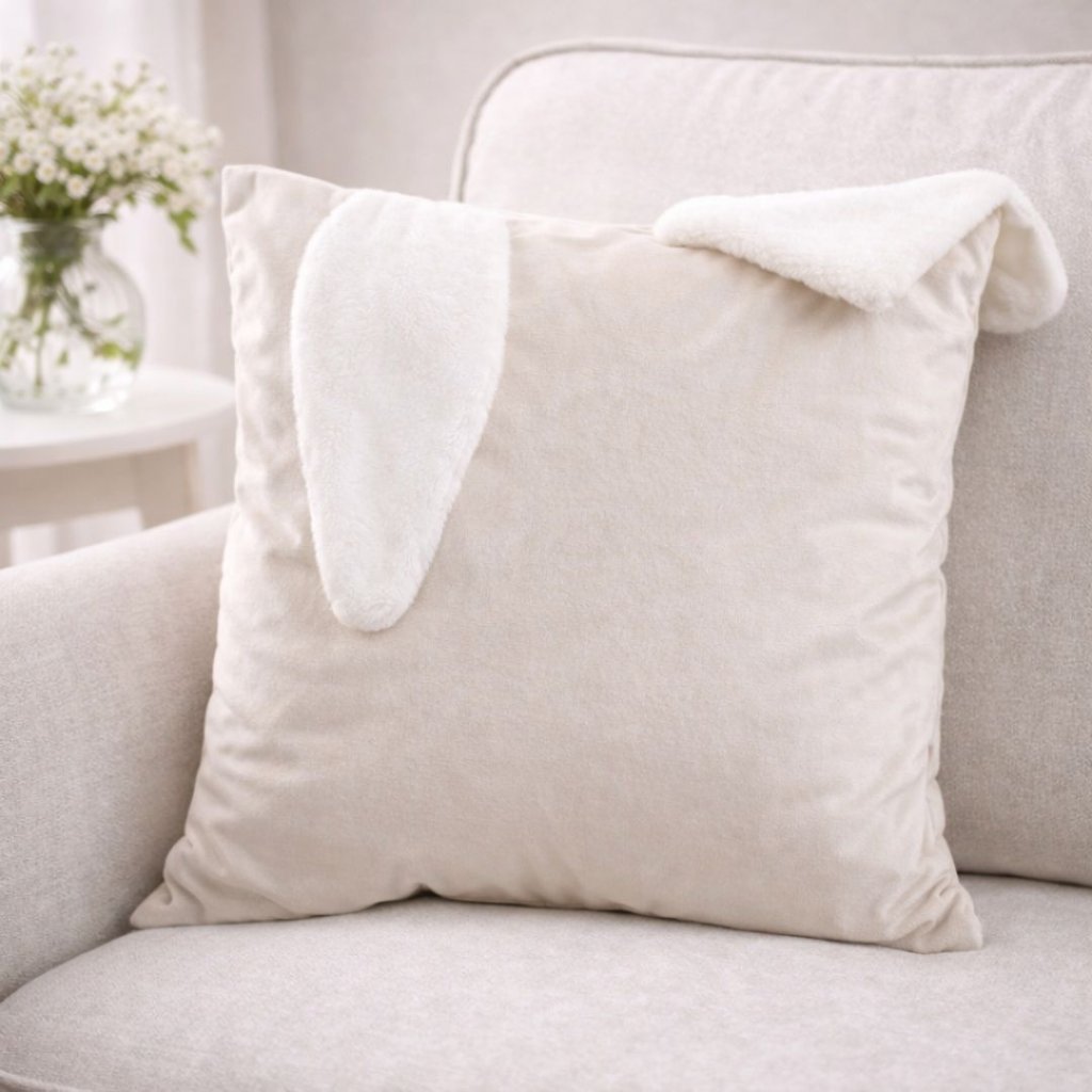 Hebký samet v jemném béžovém tónu doplňují hravé králičí ouška a nadýchaný ocásek, které z něj dělají nepřehlédnutelný detail interiéru. Na pohled minimalistický, na dotek neodolatelně měkký.