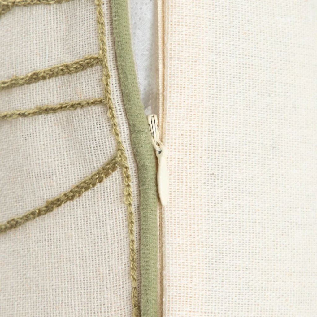 Malý detail, který dokáže změnit atmosféru celého prostoru. Krémový podklad s něžnou výšivkou kopretin a lístků a decentním zeleným lemem působí lehce, klidně a domácky – přesně tak, jak má domov působit. Ideální do světlých interiérů, na křeslo, postel i pohovku. - Rozměr: 45 × 45 cm