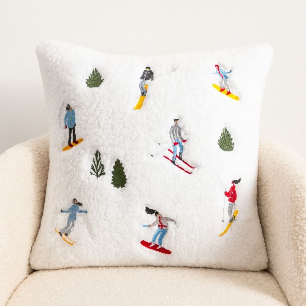 - Vneste do svého domova kouzlo zimní atmosféry s tímto jedinečným povlakem na polštář. Hebký povrch v bílém odstínu doplňuje hravý zimní motiv lyžařů a snowboardistů, který působí stylově i útulně. Perfektní doplněk pro zimní sezónu, který zahřeje na pohled i dotek.