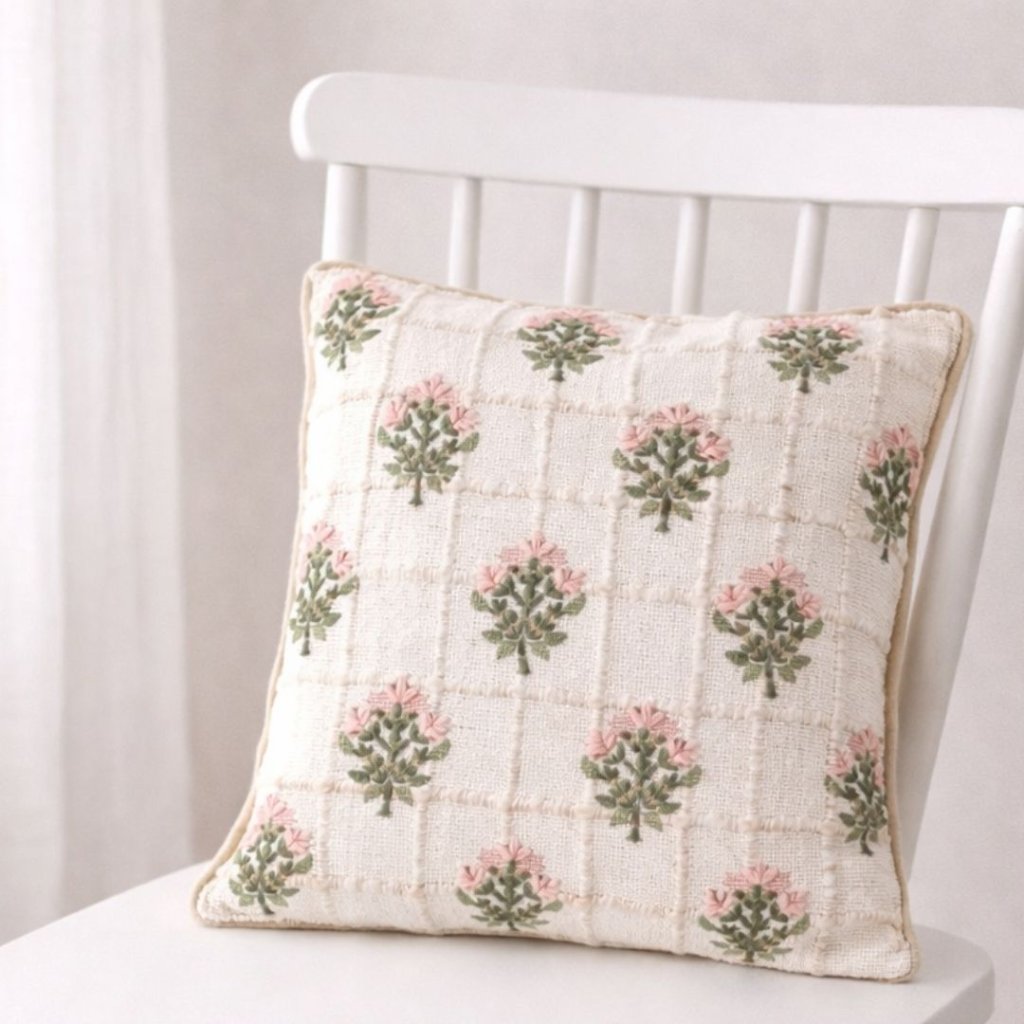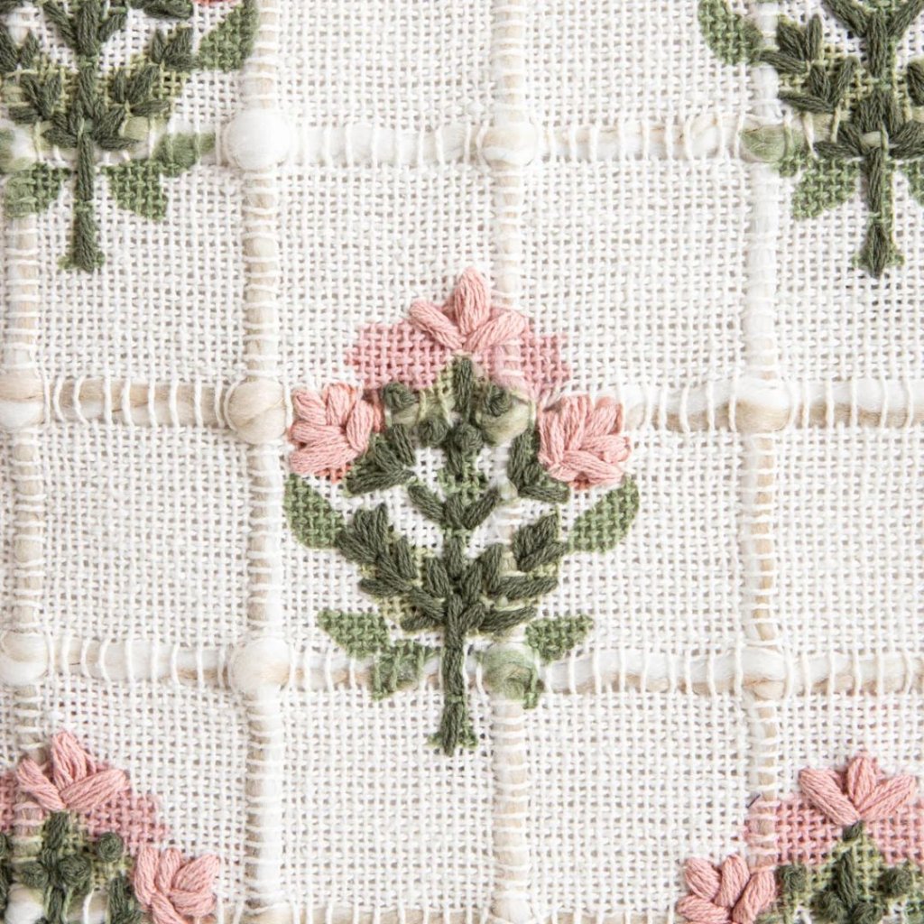 - Jemná květinová výšivka v kombinaci se strukturovaným mřížkovým povrchem vytváří harmonický a nadčasový detail pro váš interiér. Měkká bavlna je příjemná na dotek a dodá pohovce, křeslu i posteli útulný, přirozený charakter v duchu klidného bydlení.