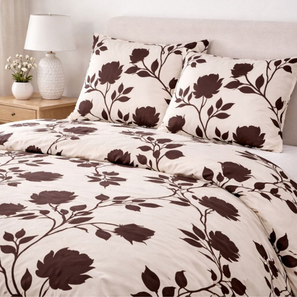 - Povlečení z mikrovlákna – s květinami v hnědé barvě
