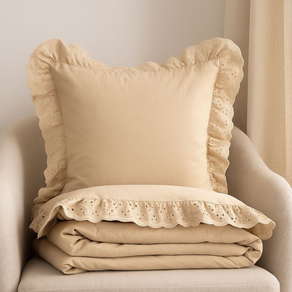 - Povlečení z mikrovlákna s krajkou - béžový odstín