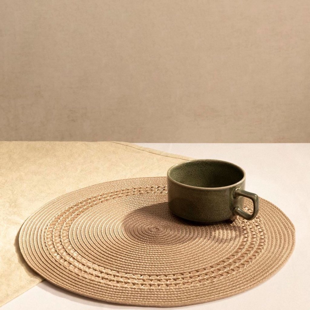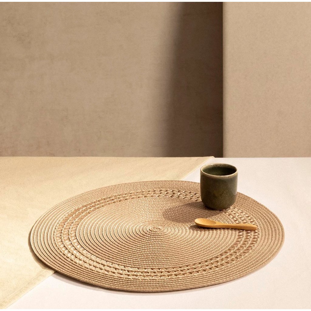 - Dodejte svému jídelnímu stolu styl a ochranu zároveň s tímto elegantním kulatým prostíráním v přírodní barvě.