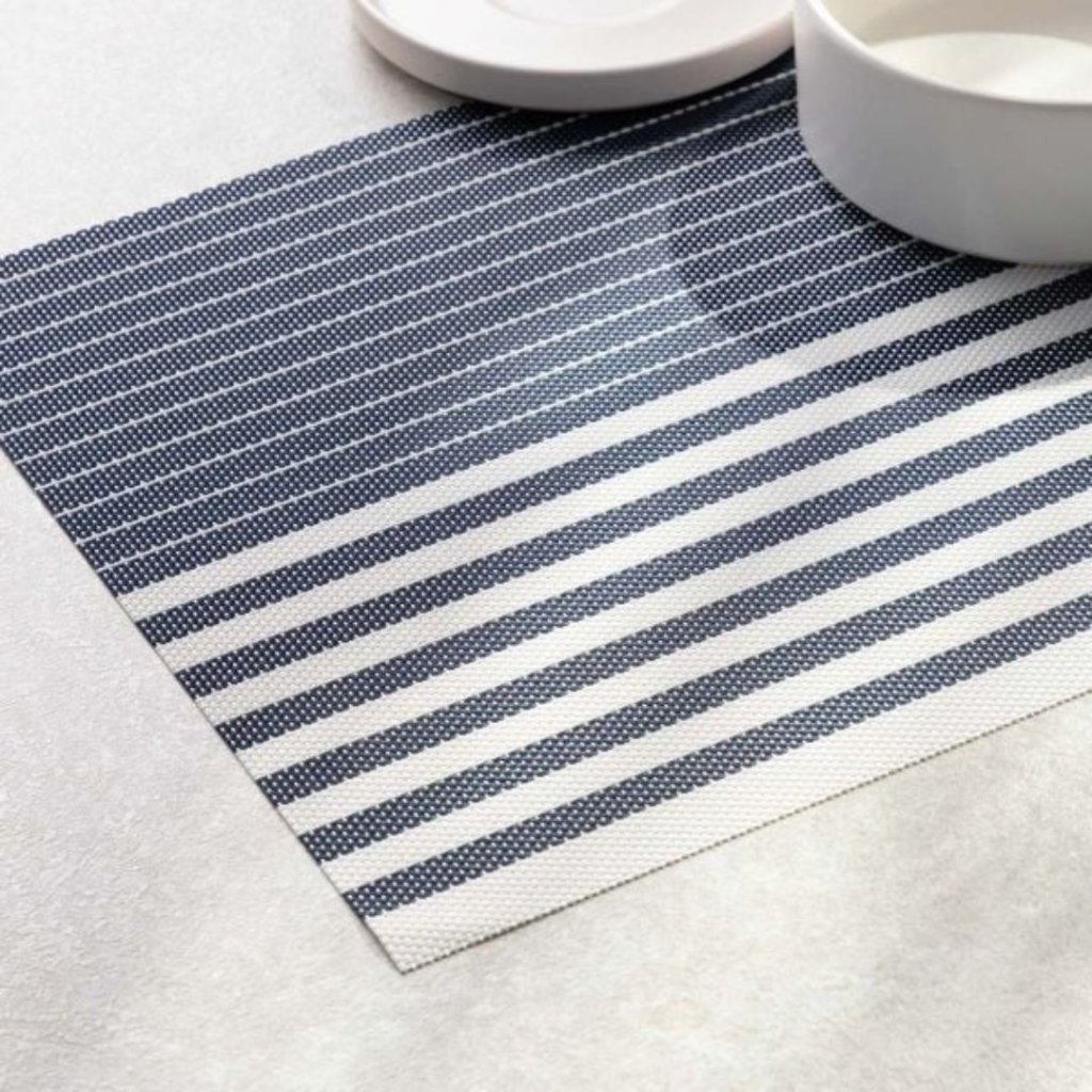 - Tmavě modré prostírání LAVRAS je perfektní volbou – jeho elegantní pruhovaný vzor dodá každému nádobí nový charakter. Minimalistický styl a syté barvy dodají vašim jídlům nadčasový nádech.