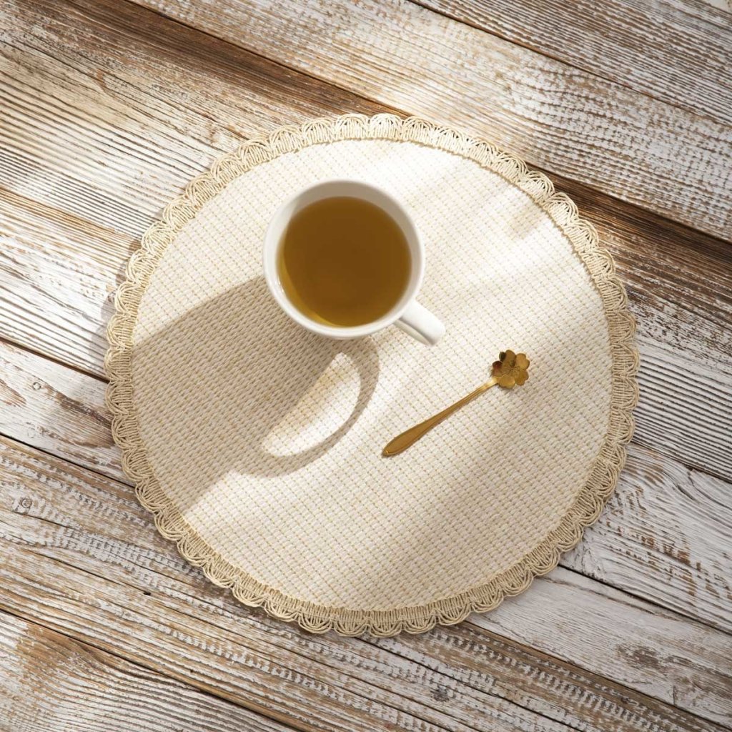 - Prostírání o průměru 38 cm je perfektním doplňkem vašeho jídelního stolu. Bude to krásně vypadat pod nádobím a zároveň to ochrání desku stolu před poškrábáním.