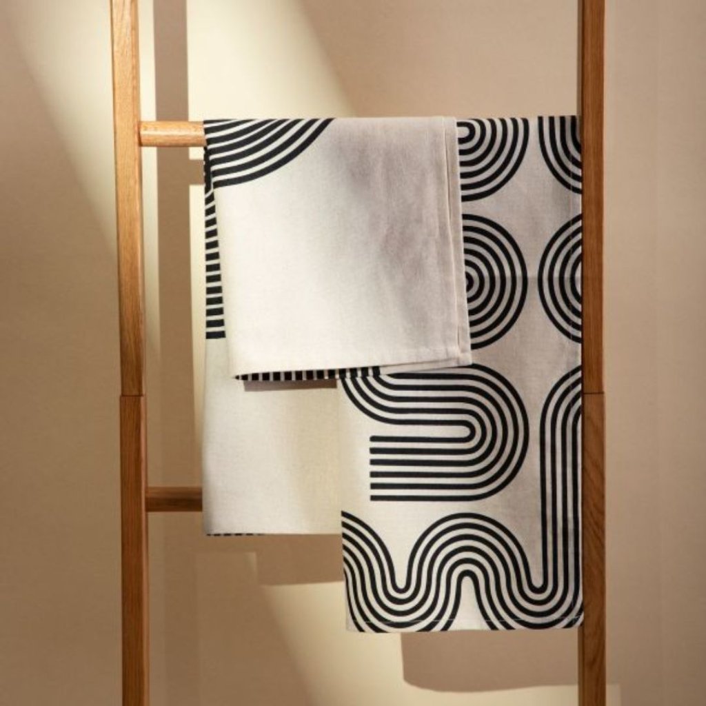 - Sada utěrek CAREM je ideální volbou pro milovníky moderních akcentů v kuchyni. Kontrastní geometrické vzory v černé barvě na přírodním pozadí dodávají vzhledu charakter a přitahují pozornost. Jejich minimalistický tvar se skvěle bude vyjímat v loftovém, industriálním a skandinávském stylu.