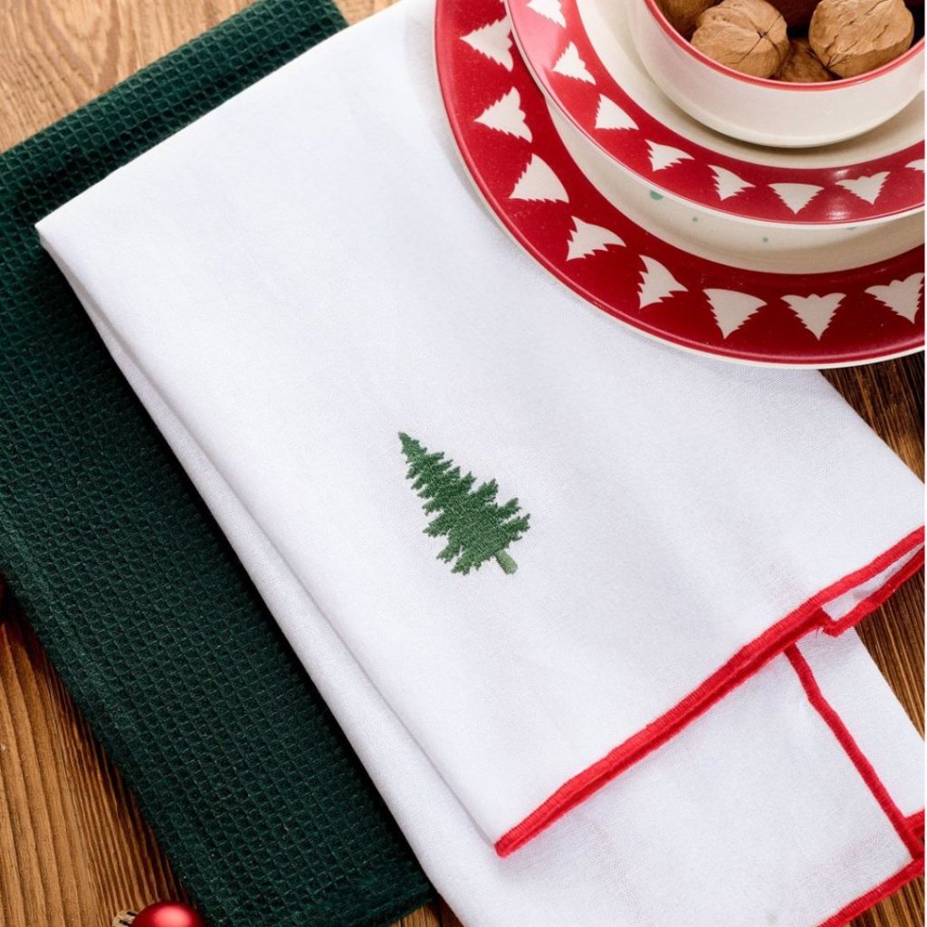 - ✨ Sada kuchyňských utěrek v zelené a bílé barvě s lemováním a stromkem – 45x65 cm