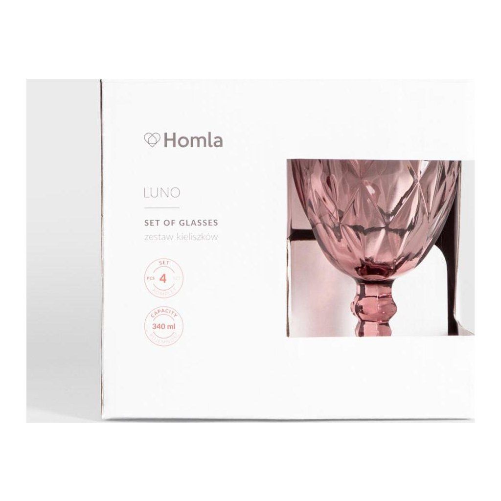 - Sada sklenic LUNO v jemném růžovém odstínu je elegantním doplňkem, který dodá každé aranžmá stolu jemnost a lehkost. Dekorativní ražba dodává sklenicím mimořádně působivý vzhled.