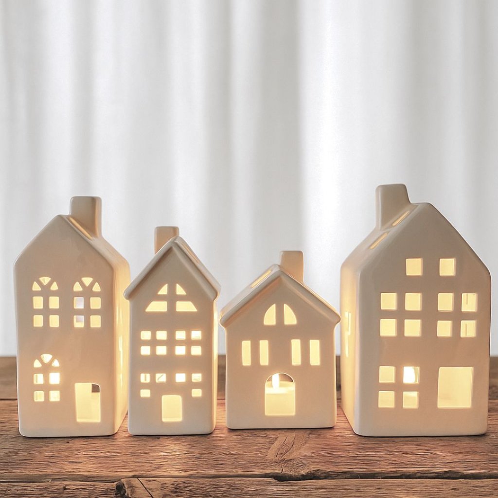- Objevte kouzlo zimních večerů s exkluzivní sadou keramických svícnů Maison White Collection – čtyřmi elegantními domečky, které společně tvoří malebné bílé městečko.