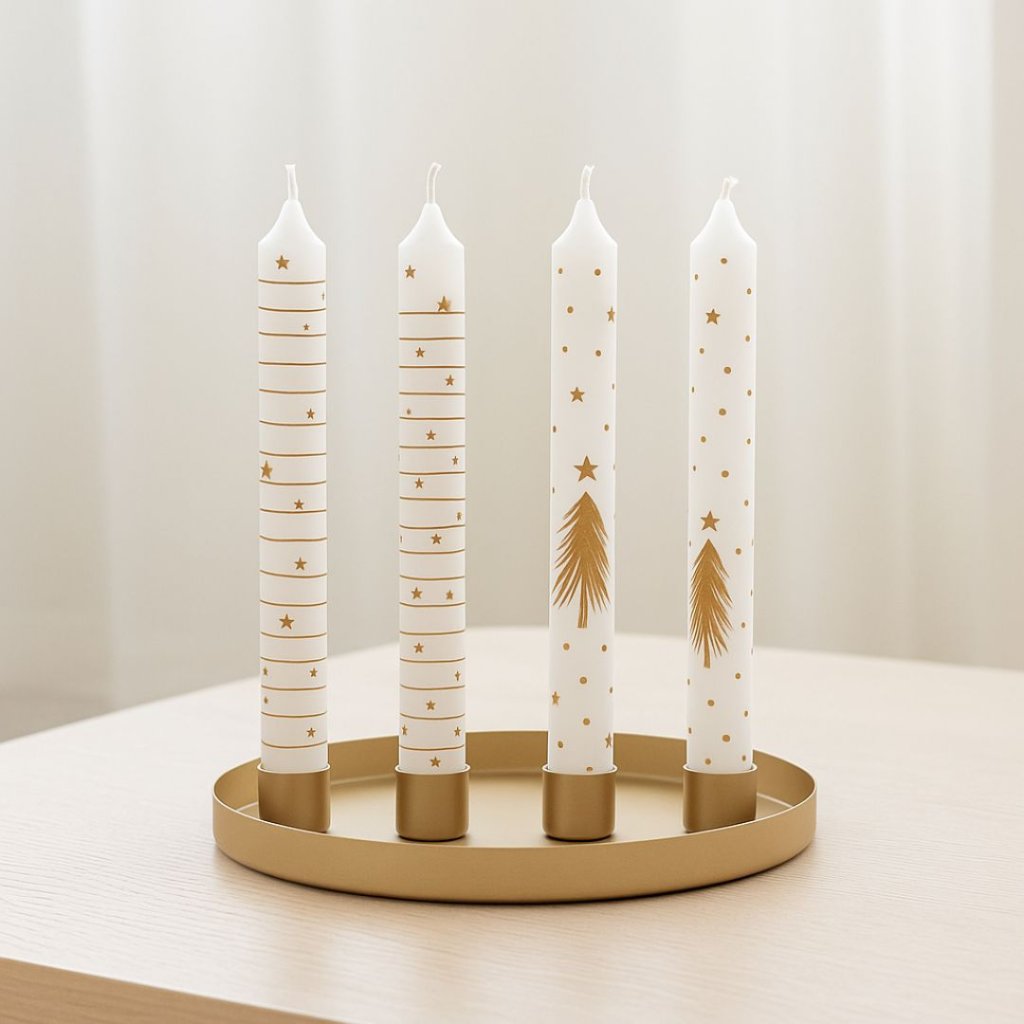 - Vneste do svého domova hřejivou atmosféru Vánoc s těmito elegantními svíčkami s jemným zlatým dekorem.