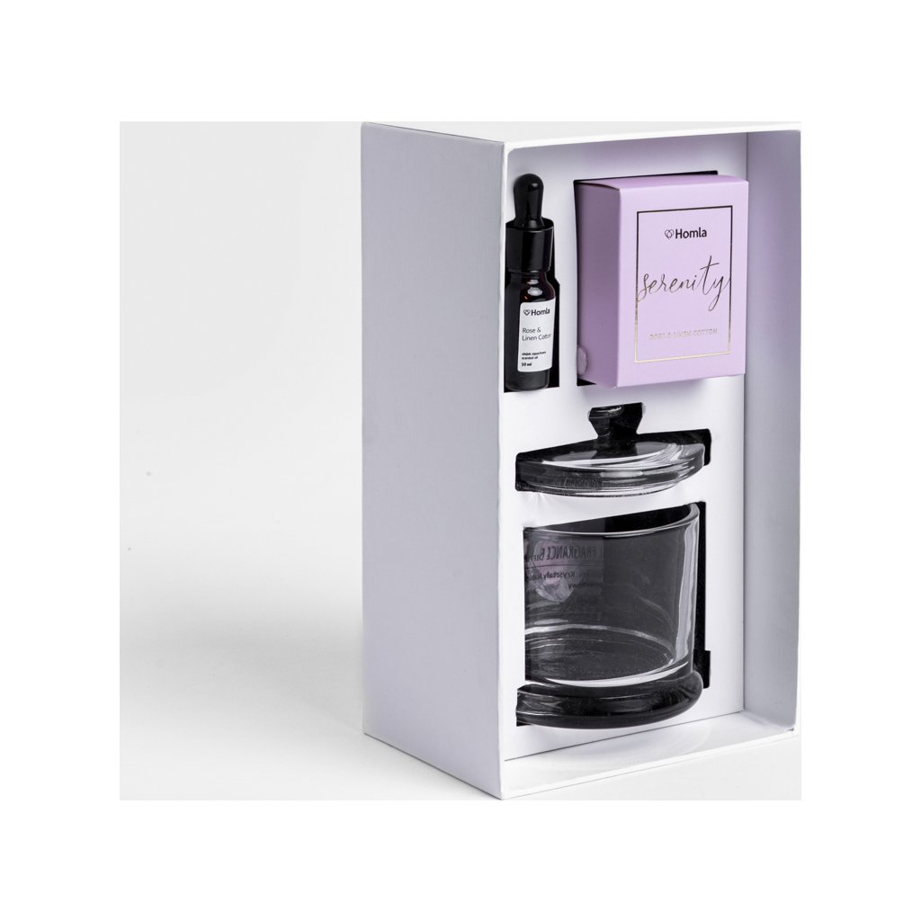 - Vneste do svého interiéru atmosféru relaxace a harmonie se sadou vůní SERENITY. Krystaly přírodního růženínu v kombinaci s olejem s jemnou vůní růží a čerstvé bavlny vytvářejí jedinečný smyslový zážitek. Elegantní skleněná nádoba s víkem slouží nejen praktickému účelu, ale také krásně ozdobí moderní i klasické aranžmá.