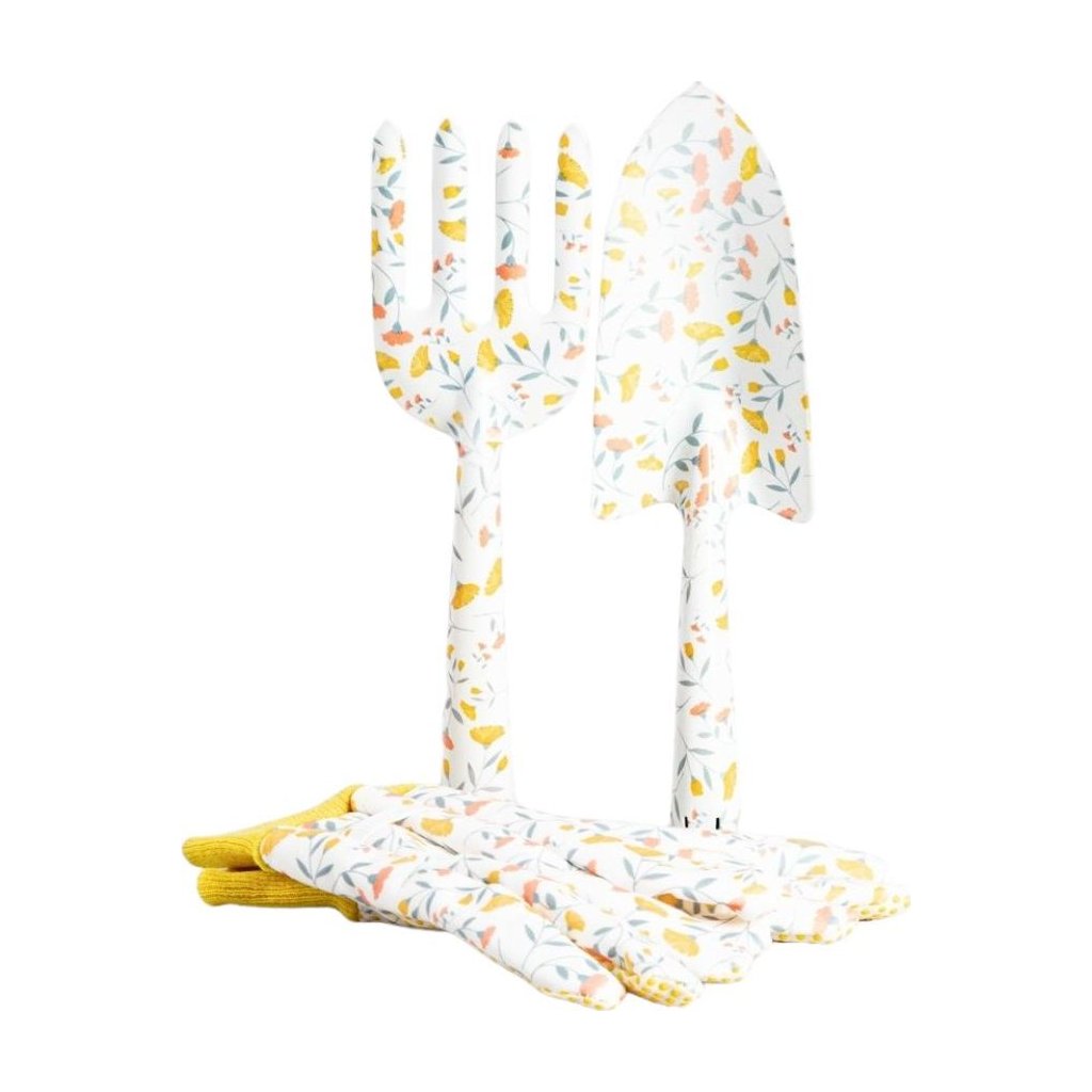 - Zahradní sada MEADOW, která se skládá z lopaty, vidlí a vhodných zahradních rukavic, vám umožní řádně pečovat o vaše rostliny. Okouzlující květinový vzor nářadí promění každodenní zahradničení v čiré potěšení. Nástroje jsou praktické a dobře padnou do ruky.