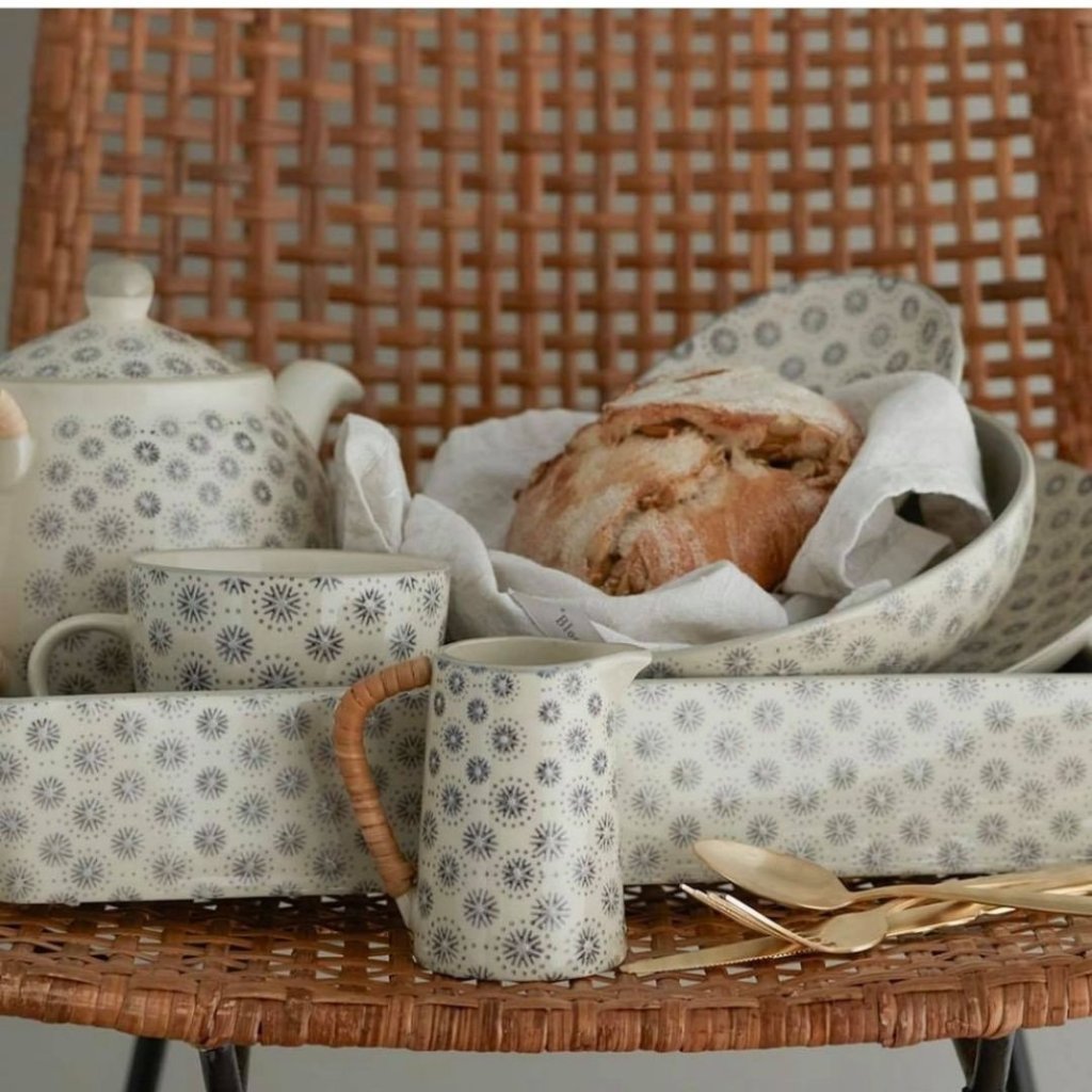 Kameninová šedá servírovací miska Elsa značky Bloomingville je nejnovější tištěné nádobí v severském a jednoduchém stylu. Potisk této kameninové mísy má odlehčovací účinek a je perfektní pro jakékoli podávání jídla. Servírovací mísa je krásným doplňkem v sérii Elsa, talíře, mísy, misky, džbán a jiné nádobí.Tato krásná kolekce je jedinečná a je vyráběna ručně .