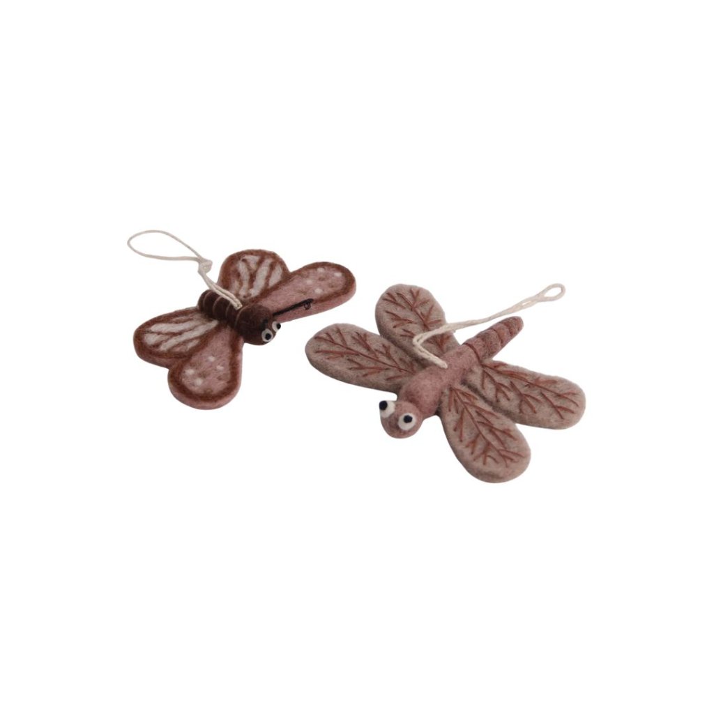 Set 2 ks plstěných závěsných dekorací – motýlek a vážka