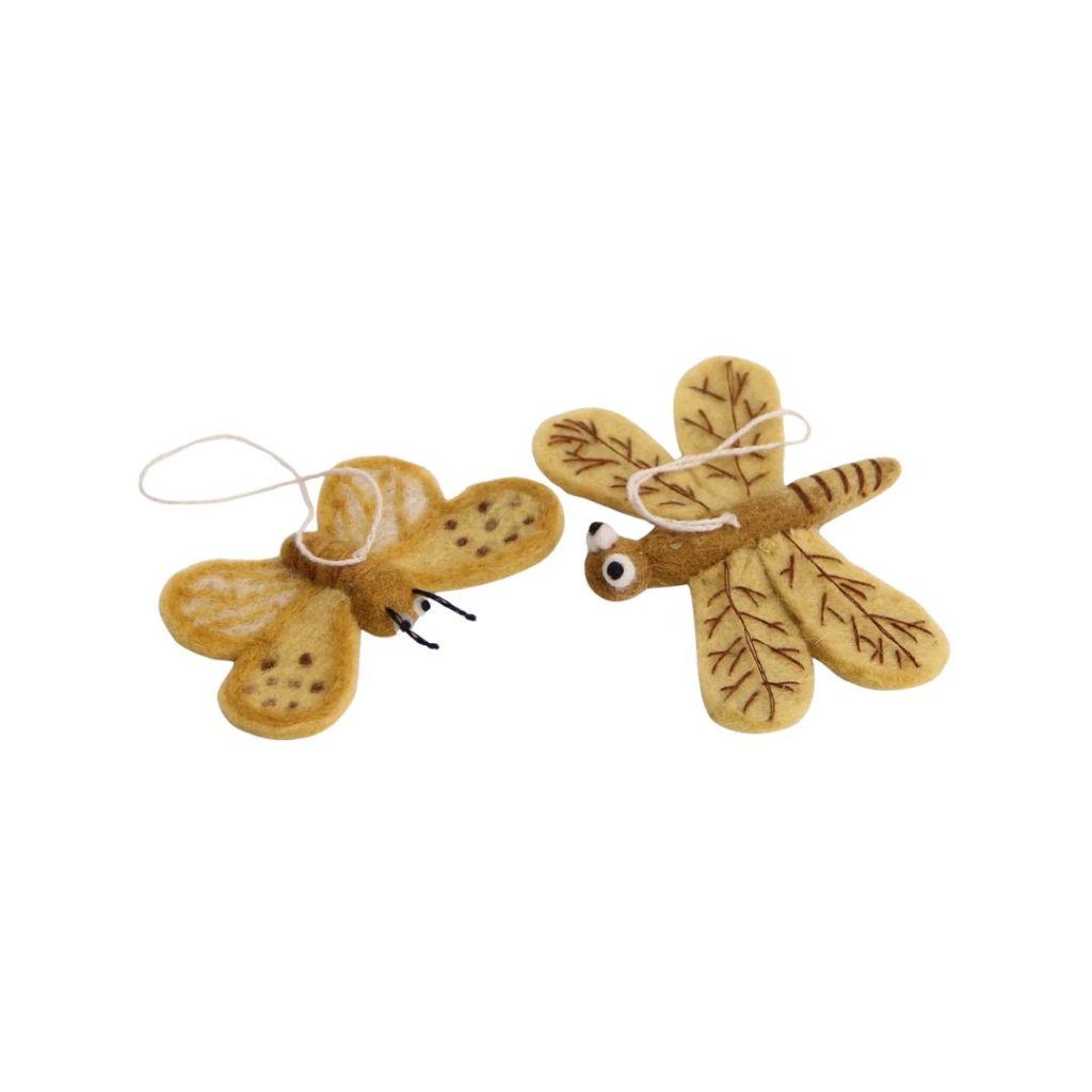 - V balení najdete motýlka a vážku, každou precizně zpracovanou z kvalitní ovčí vlny s důrazem na detail – jemné žilkování křídel, drobné tečky i roztomilé výrazné oči.