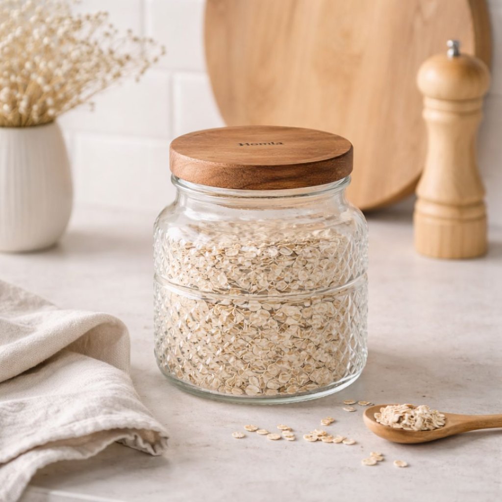 - Stylová a praktická volba pro skladování potravin. Díky objemu 600 ml je ideální na sůl, cukr, koření, sušené ovoce či další suroviny. Průhledné sklo s elegantním reliéfem umožňuje snadno rozpoznat obsah bez nutnosti otevírání. Víčko z odolného akáciového dřeva perfektně těsní a dodává dóze přírodní šmrnc. Skvěle zapadne do každé kuchyně v přírodním nebo skandinávském stylu.