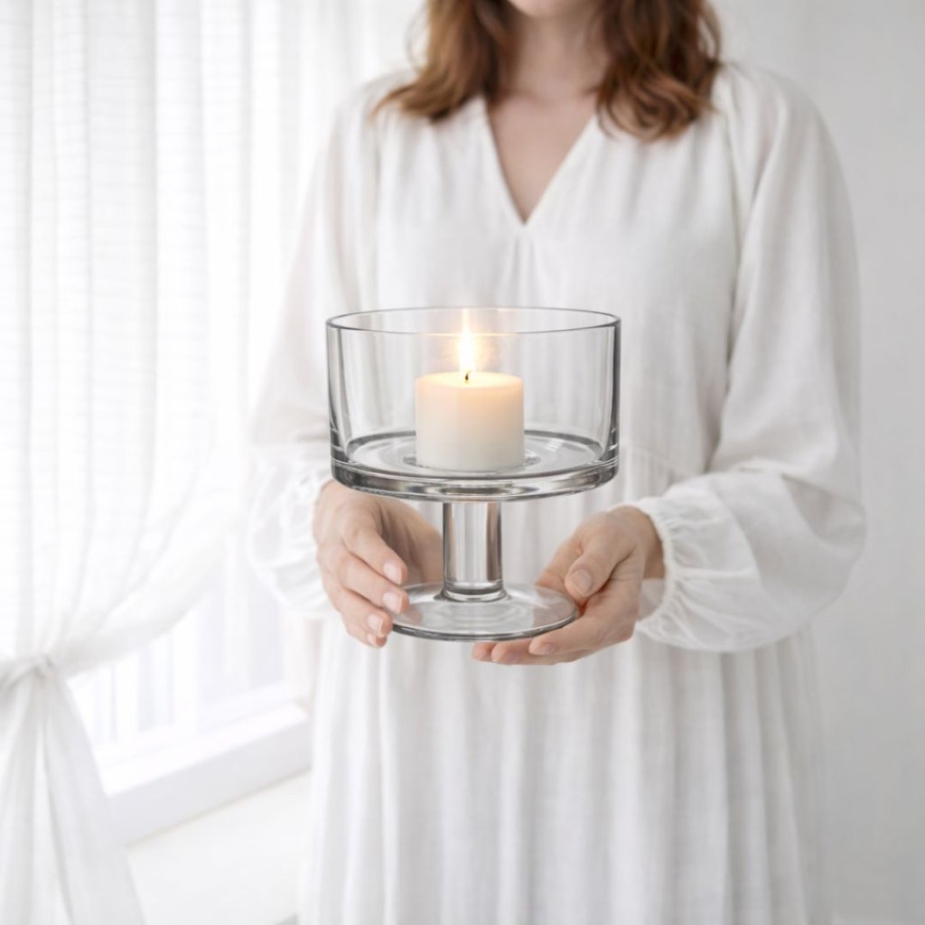 - Čisté sklo a jednoduchý tvar dodají interiéru lehkost a klid. Hodí se na komodu, jídelní stůl, parapet i do otevřené police – všude tam, kde chcete vytvořit jemnou atmosféru.