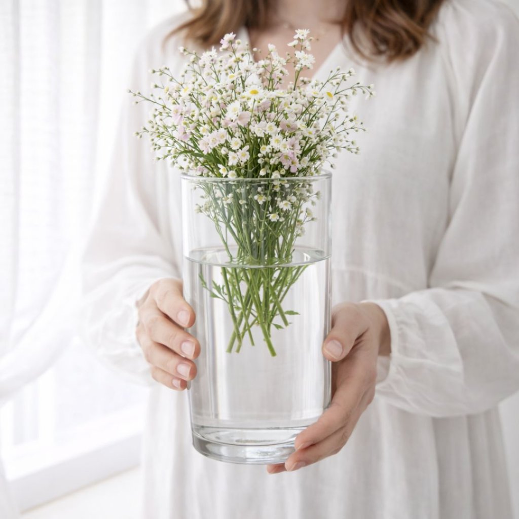 - Válcový tvar vázy nabízí široké možnosti použití, od aranžování čerstvých květin až po dekorativní prvky, jako jsou kamínky, svíčky nebo sušené květy.