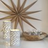 Sklěněný svícen v bílé barvě 21 cm s motivem hvězdiček má LED osvětlení. Kouzelný svícen, který překrásně svítí si zamulujete a budete se kochat jemným stylem hvězdiček.