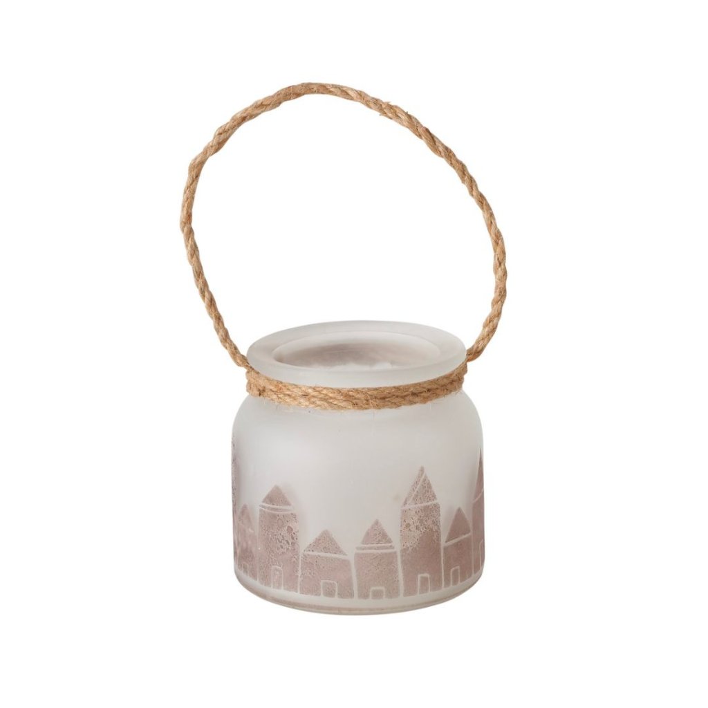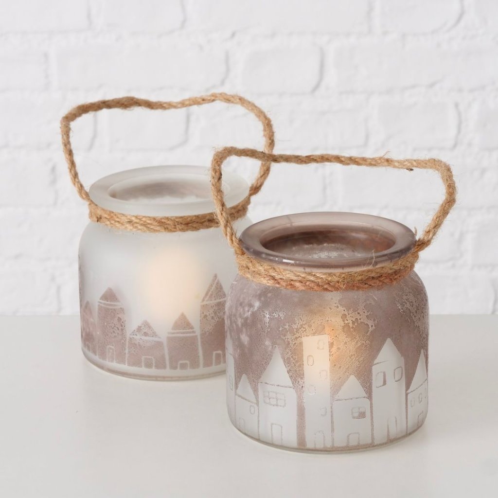 - Elegantní skleněný svícen s domky je další kolekcí z řady svícnů s krásným designem, díky provázku je lehce přenosný a lze svícen i zavěsit.
