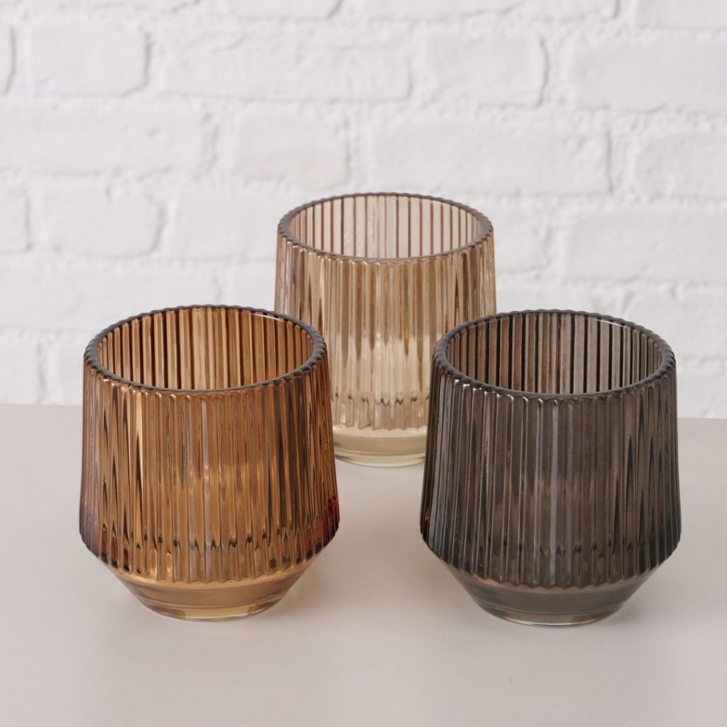 Nádherný skleněný kulatý svícen Tiago v hnědé barvě s vroubkováním. Krásné odrazy budou zářit u vás doma. Teplý barevný odstín svícnu bude zářit / působit velice útulně.