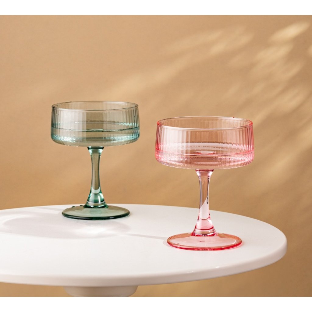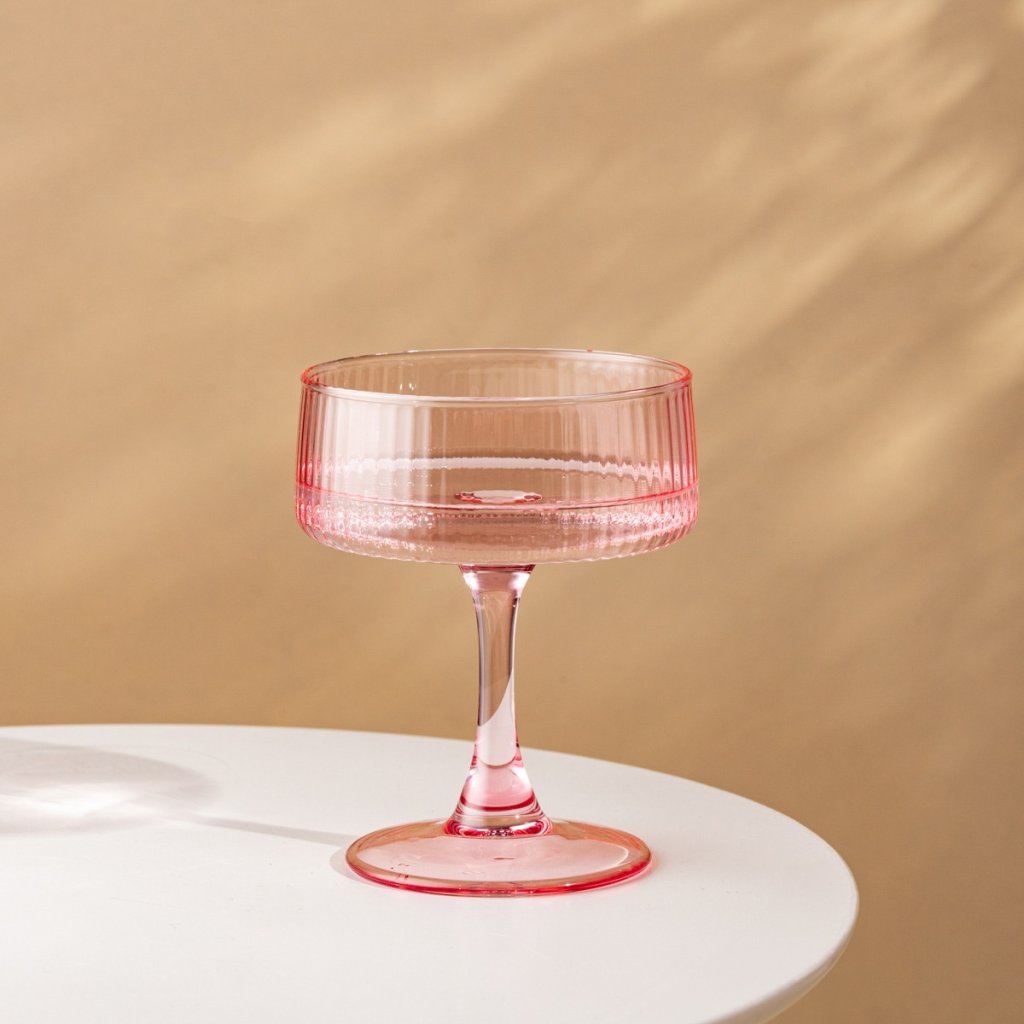 - Její růžové sklo a propracované drážky přitahují pozornost a dodávají stolu nádech retro kouzla. Je to perfektní volba pro večer s přáteli, romantickou večeři nebo speciální přípitek, na který budete dlouho vzpomínat.