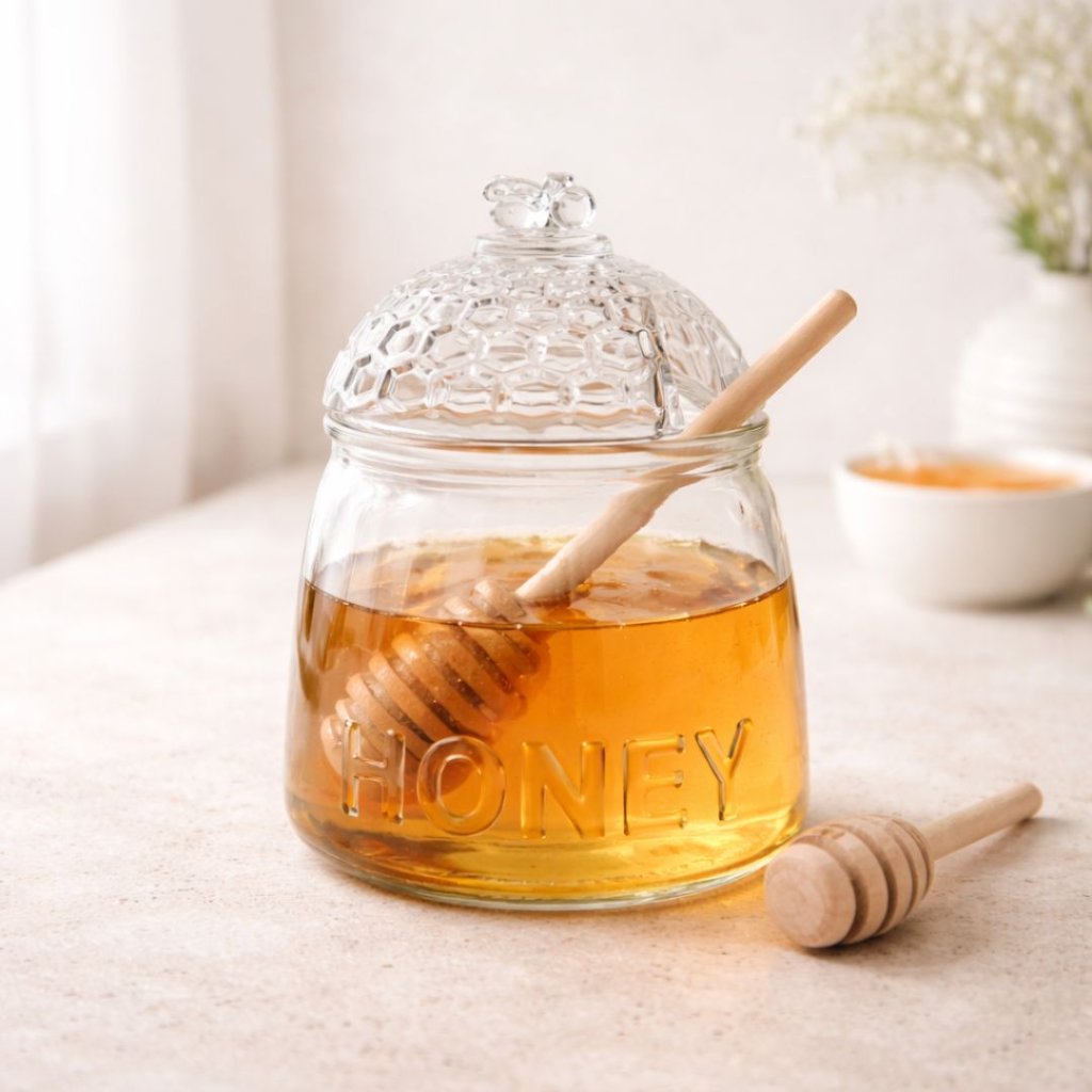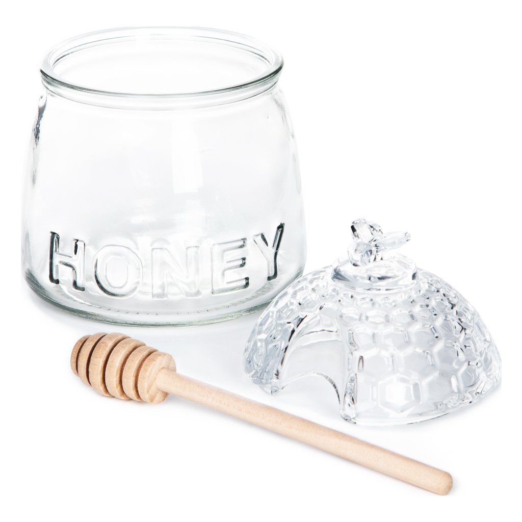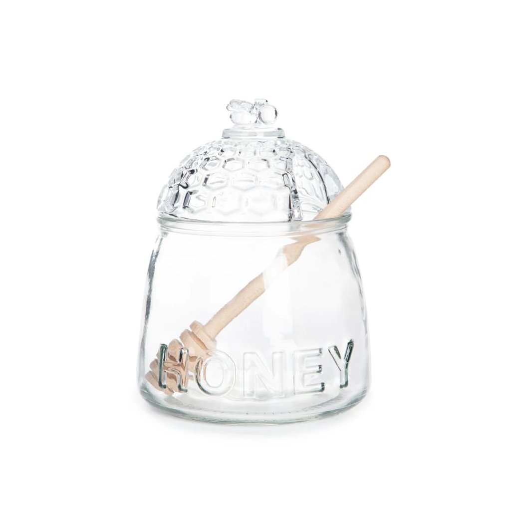 - Dopřejte si každodenní rituál s kapkou sladkosti. Elegantní sklenice na med s plastickým víčkem a dřevěnou medovou tyčinkou je nejen praktickým pomocníkem, ale i krásným detailem do vaší kuchyně. Čisté sklo nechá vyniknout zlatavé barvě medu a jemný reliéf dodává celku osobitý charakter.
