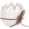 Keramický bílý obal doplňuje jemné zdobení peříčka a také hnědý provázek. Obal má tvar skořápky a přes tyto rysy je elegantní a stane se vaší oblíbenou velikonoční dekorací.