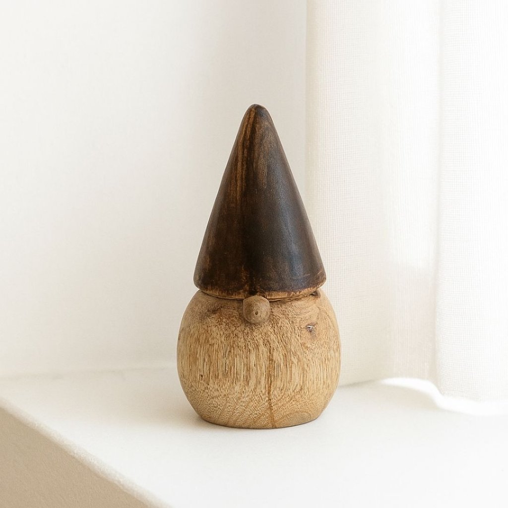 - Skřítek z mangového dřeva Julto je roztomilou dekorací, která může zdobit váš interiér.