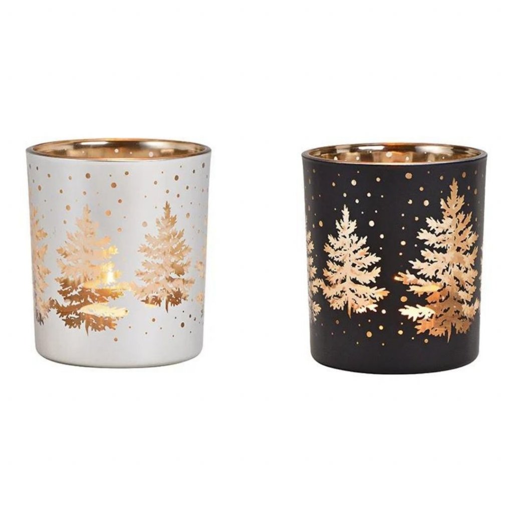 Nádherný skleněný kulatý svícen v stříbrné nebo černé barvě s nádherným motivem zlatých stromků bude to pravé na zimní období. Krásné odrazy motivů stromečků budou zářit u vás doma. Svícen vám bude dělat jen radost a při věčerních hodinách vás jistě okouzlí svým jemným stylem.