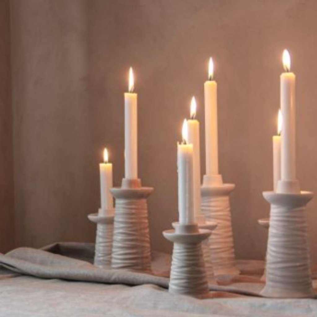 Keramický svícen v jémné béžové matné barvě na kuželovou nebo kónickou svíčku pro milovnice jednoduchosti a stylu. Krásný jemný svícen, který má originální design v podobě vlnek.