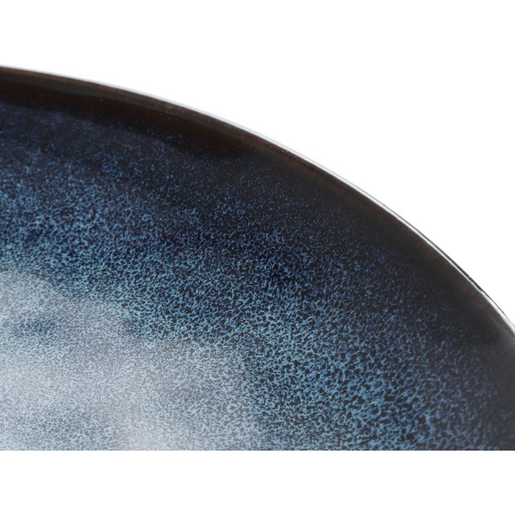 - Talíř má spoustu drobných ornamentů - tmavě modrých teček , které zpestřují design výrobku. Produkt je unikátní díky své technologii barvení.