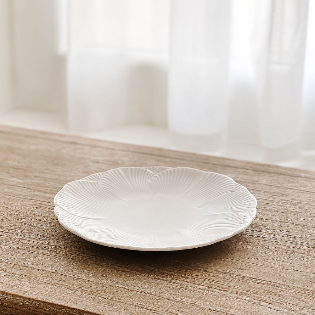 - Jeho jemně zvlněný okraj a něžný reliéfní vzor působí lehce a elegantně.