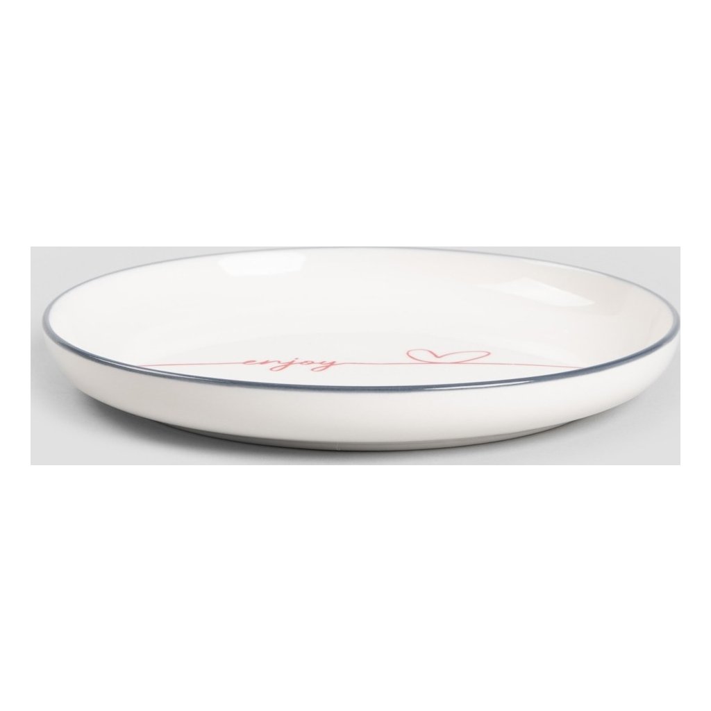 - Někdy stačí jen malý detail, aby vám u snídaně vykouzlil úsměv na tváři. Talíř LOVELY LIFE s nápisem „enjoy“ a decentním srdíčkem je jedním z nich. Jeho jemná forma a jednoduchý, ale okouzlující potisk nám připomínají malé radosti, které stojí za to oslavovat každý den.