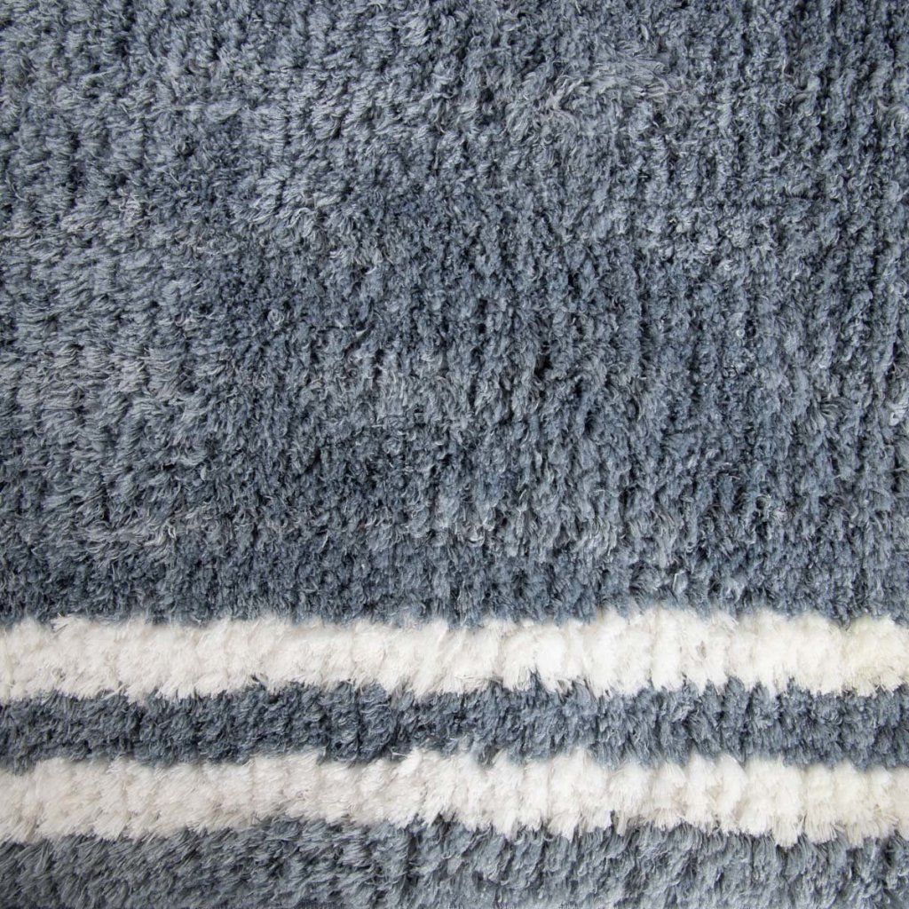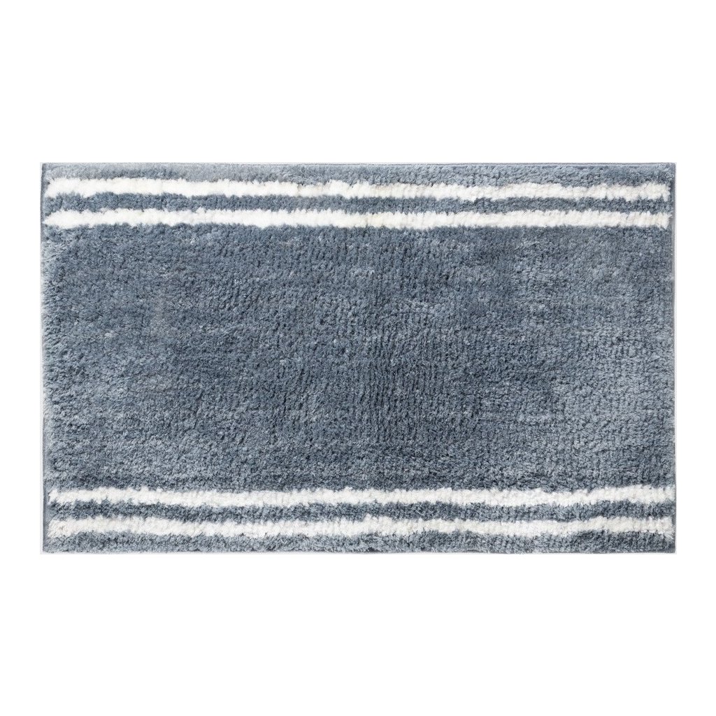 - Tmavě modrý koupelnový koberec s bílými pruhy 50 x 80 cm
