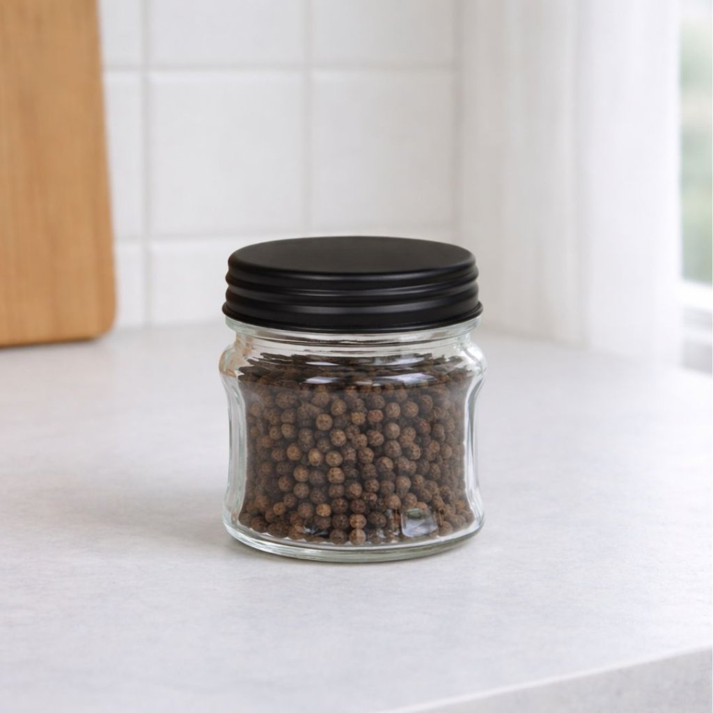 - Skleněné dózy s černým víkem se skvěle hodí jak do koupelny na drobnosti a kosmetické doplňky, tak i do kuchyně na drobné potraviny.