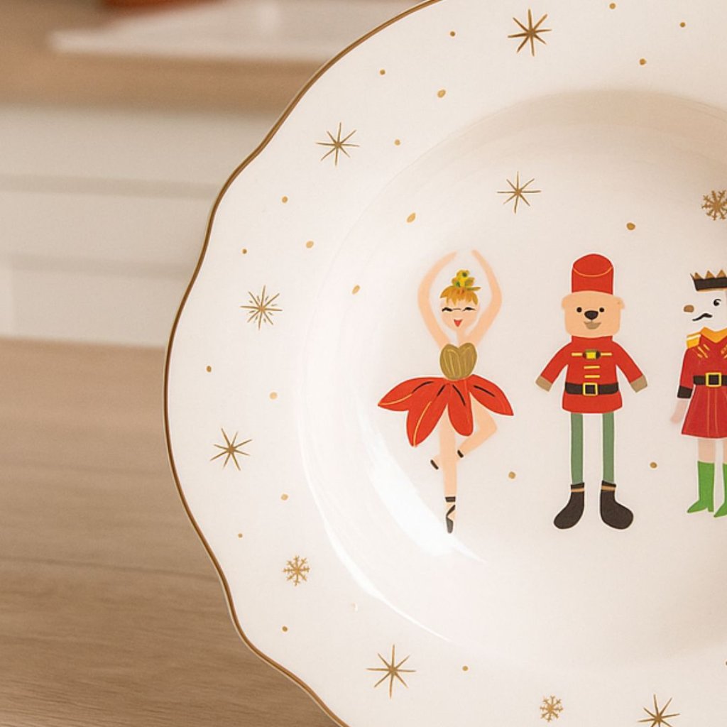 - Na dně talíře se vyjímá baletka, vojáček a myší král – ikonické postavy, které k Vánocům neodmyslitelně patří.