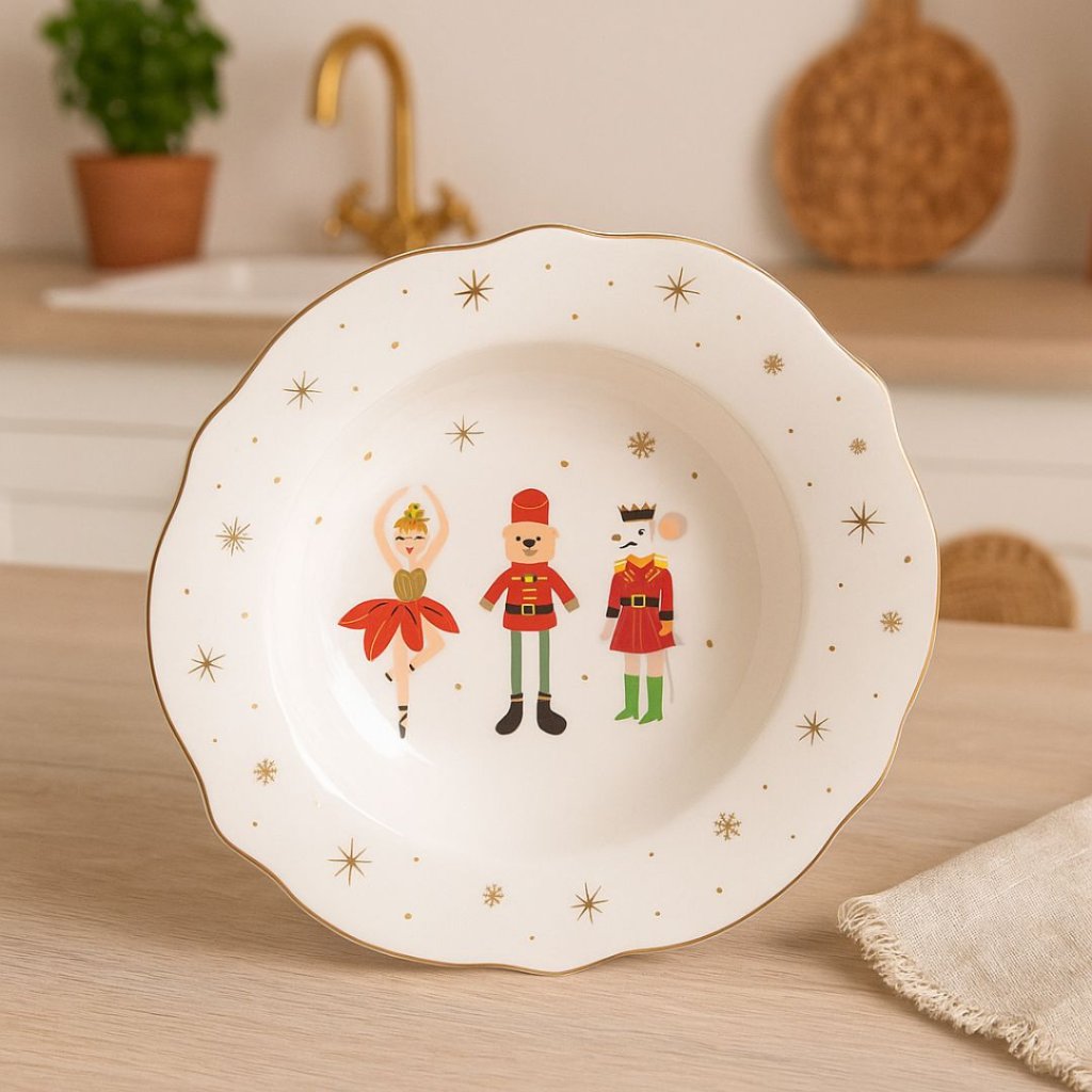 - Pohádkově laděný hluboký talíř z kvalitního porcelánu, inspirovaný klasickým příběhem o Louskáčkovi.